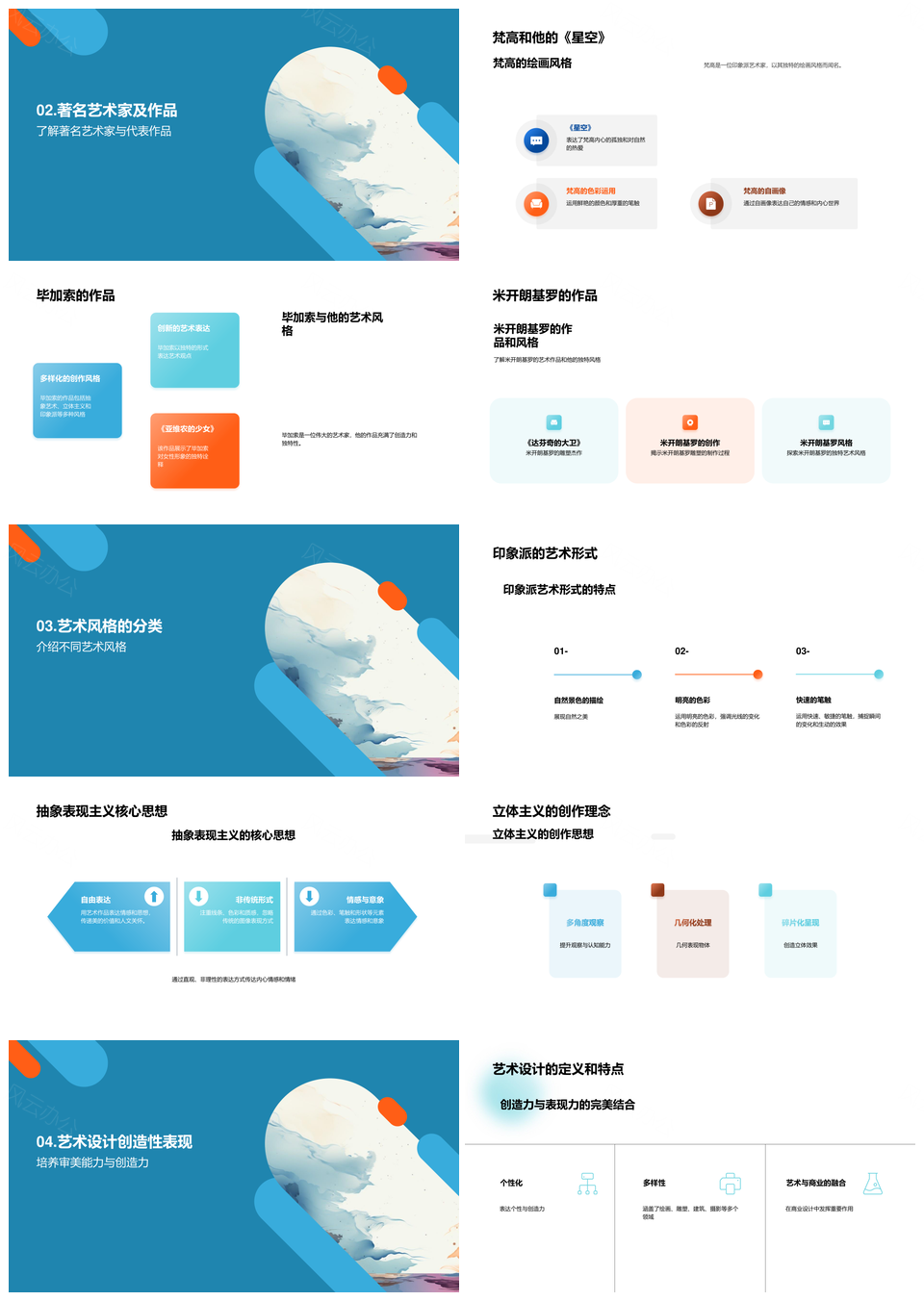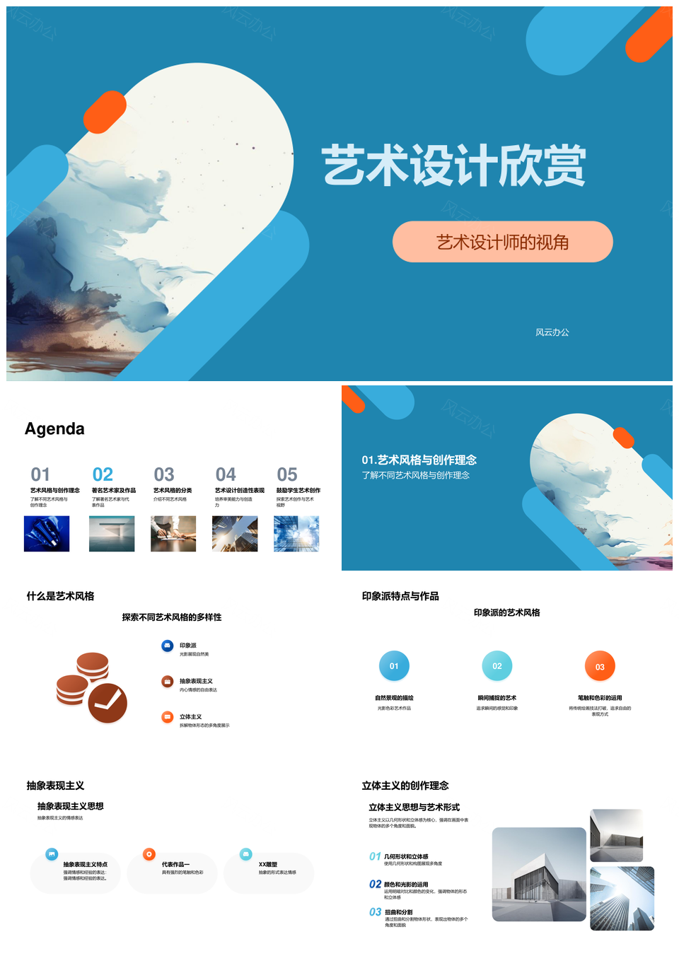 风云办公提供的初中美术印象派抽象表现设计赏析PPT模板,下载格式为pptx,一共24页,作品中文字及图均可以修改和编辑,图片更改请在作品中右键图片并更换,文字修改请直接点击文字进行修改。