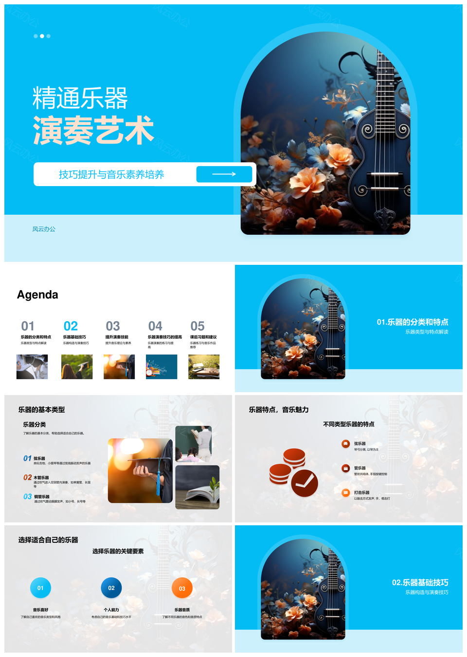 风云办公提供的乐器演奏技巧素养理论与构造类型精进PPT模板,下载格式为pptx,一共23页,作品中文字及图均可以修改和编辑,图片更改请在作品中右键图片并更换,文字修改请直接点击文字进行修改。