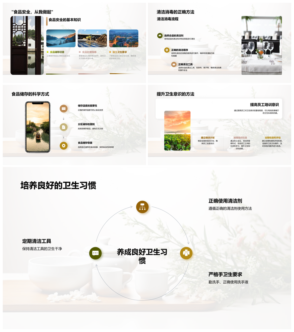 风云办公提供的餐饮卫生安全管理提升清洁消毒标准PPT模板,下载格式为pptx,一共33页,作品中文字及图均可以修改和编辑,图片更改请在作品中右键图片并更换,文字修改请直接点击文字进行修改。
