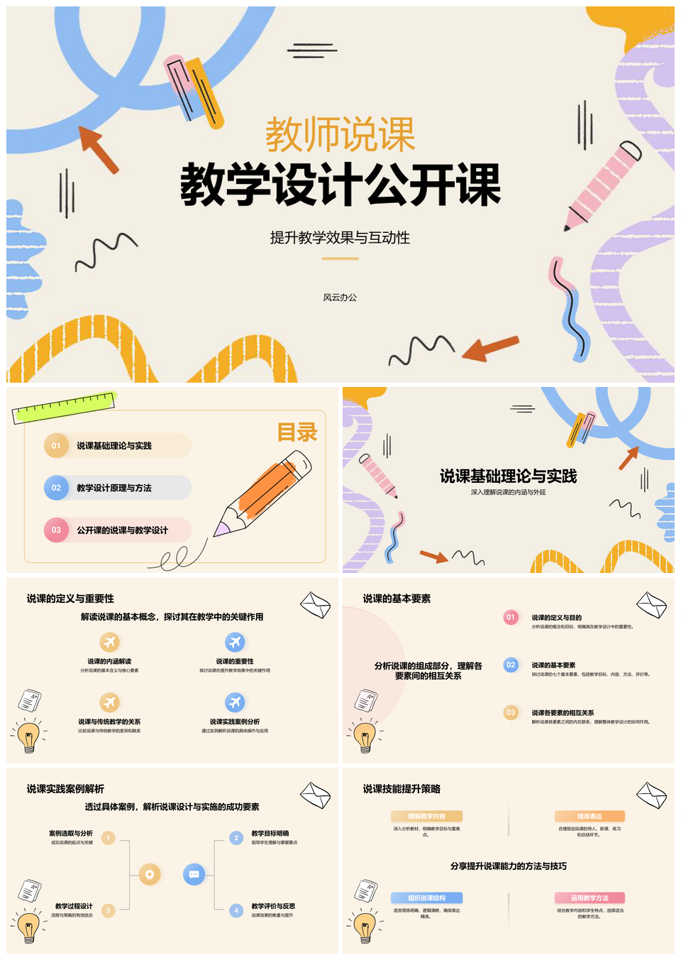 风云办公提供的教师说课教学设计互动趣味高效教育公开课课件,下载格式为pptx,一共18页,作品中文字及图均可以修改和编辑,图片更改请在作品中右键图片并更换,文字修改请直接点击文字进行修改。