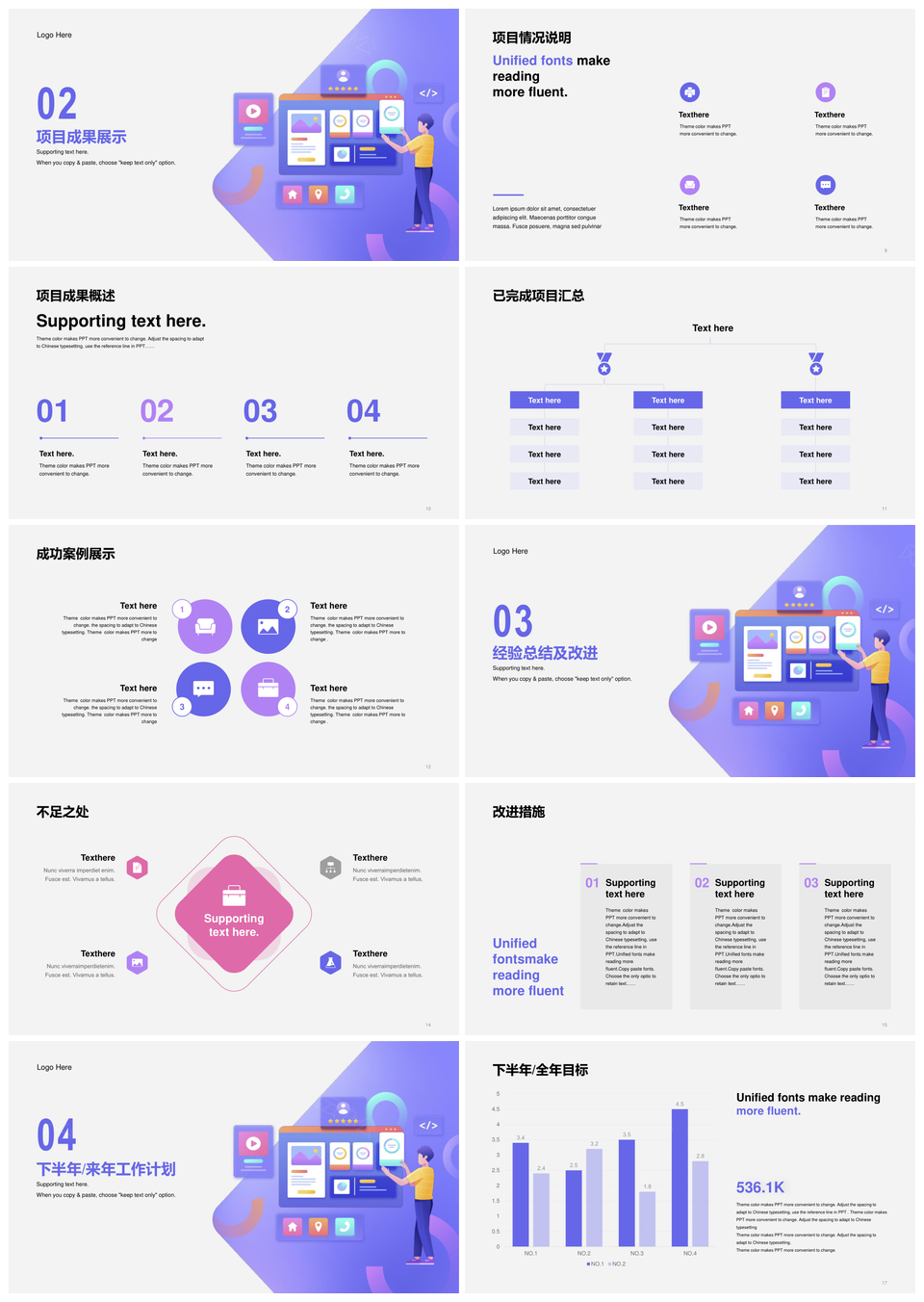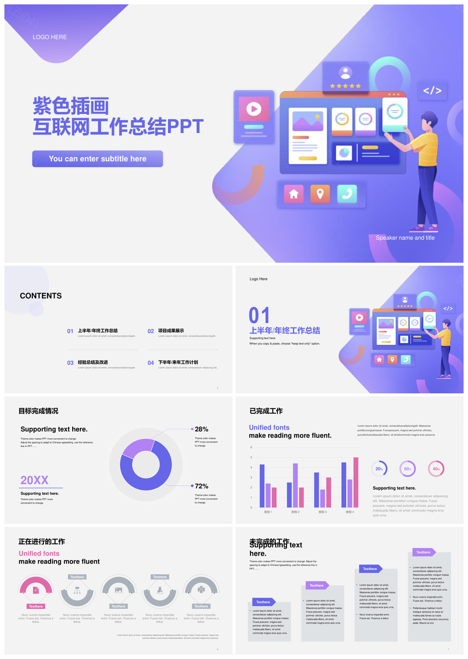 风云办公提供的紫色IT互联网人物插画工作总结PPT模板,下载格式为pptx,一共21页,作品中文字及图均可以修改和编辑,图片更改请在作品中右键图片并更换,文字修改请直接点击文字进行修改。