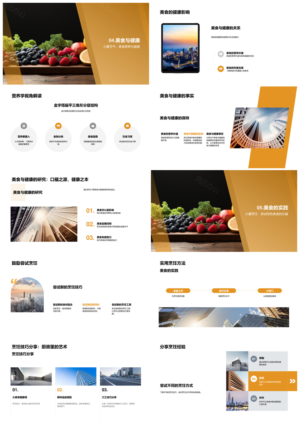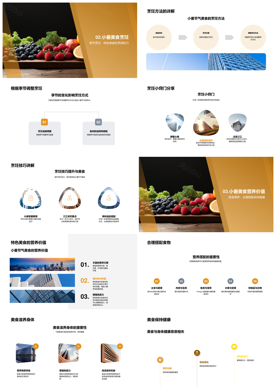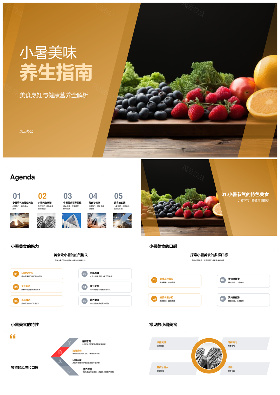 风云办公提供的小暑养生美味健康烹饪技巧果蔬营养PPT模板,下载格式为pptx,一共28页,作品中文字及图均可以修改和编辑,图片更改请在作品中右键图片并更换,文字修改请直接点击文字进行修改。
