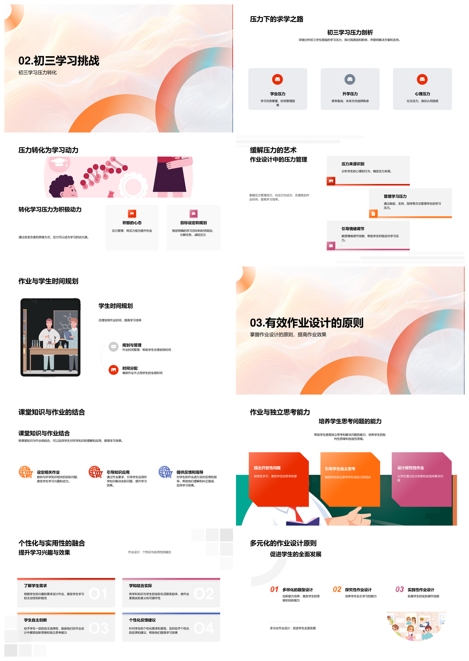 风云办公提供的初三作业设计提升学习效果兴趣减压力PPT模板,下载格式为pptx,一共28页,作品中文字及图均可以修改和编辑,图片更改请在作品中右键图片并更换,文字修改请直接点击文字进行修改。