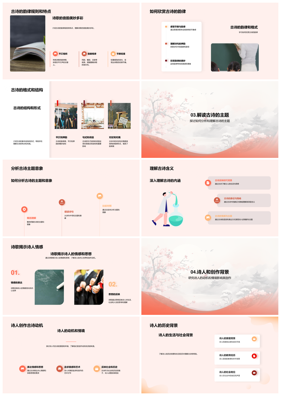 风云办公提供的古诗韵律构情思文史卷轴探析PPT模板,下载格式为pptx,一共23页,作品中文字及图均可以修改和编辑,图片更改请在作品中右键图片并更换,文字修改请直接点击文字进行修改。