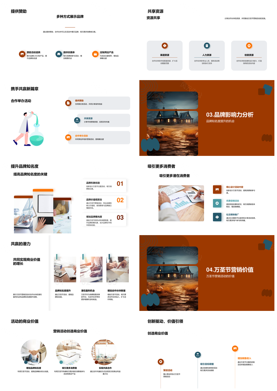 风云办公提供的万圣节营销伙伴联动品牌核心价值风暴PPT模板,下载格式为pptx,一共23页,作品中文字及图均可以修改和编辑,图片更改请在作品中右键图片并更换,文字修改请直接点击文字进行修改。