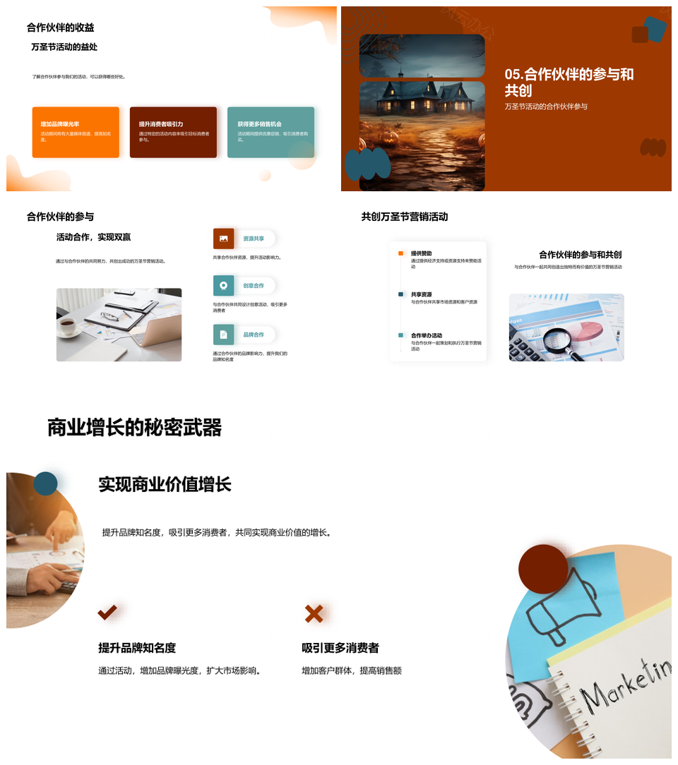 这是一张万圣节营销伙伴联动品牌核心价值风暴PPT模板,包含万圣节、营销、伙伴、联动、品牌、核心、价值、风暴等主题内容,也可用作万圣节营销伙伴联动品牌、万圣节营销伙伴联动、营销伙伴联动品牌核心、伙伴联动品牌核心价值、联动品牌核心价值风暴、万圣节营销伙伴联动、营销伙伴联动品牌、伙伴联动品牌核心、联动品牌核心价值、品牌核心价值风暴、万圣节营销伙伴、营销伙伴联动、伙伴联动品牌、联动品牌核心、品牌核心价值等PPT场景使用。