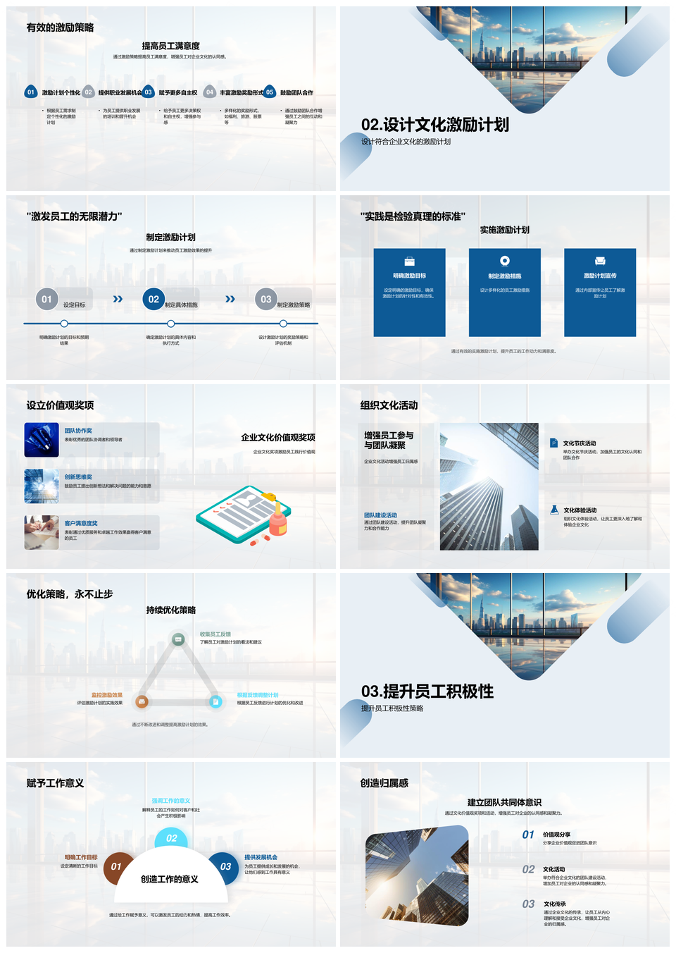 这是一张优秀企业文化激励计划提升满意度降低离职率PPT模板,包含优秀、企业文化、激励计划、提升、满意度、降低、离职率等主题内容,也可用作优秀企业文化激励计划提升、企业文化激励计划提升满意度、激励计划提升满意度降低、提升满意度降低离职率、优秀企业文化激励计划、企业文化激励计划提升、激励计划提升满意度、提升满意度降低、满意度降低离职率、优秀企业文化、企业文化激励计划、激励计划提升、提升满意度、满意度降低、降低离职率等PPT场景使用。 风云办公提供的优秀企业文化激励计划提升满意度降低离职率PPT模板,下载格式为pptx,一共33页,作品中文字及图均可以修改和编辑,图片更改请在作品中右键图片并更换,文字修改请直接点击文字进行修改。