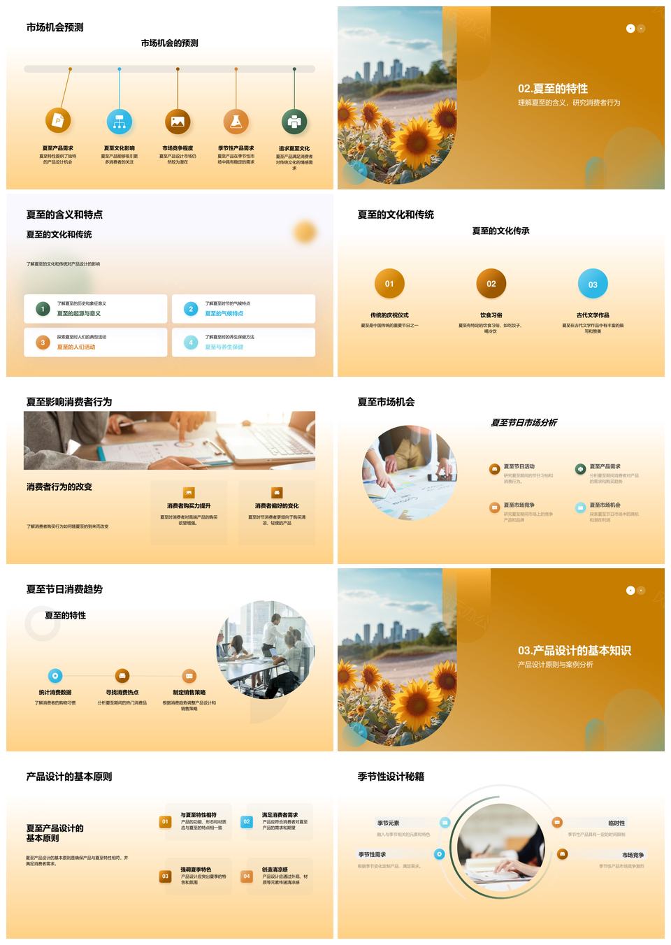 夏至产品策略季节性消费需求文化传统向日葵PPT模板推荐