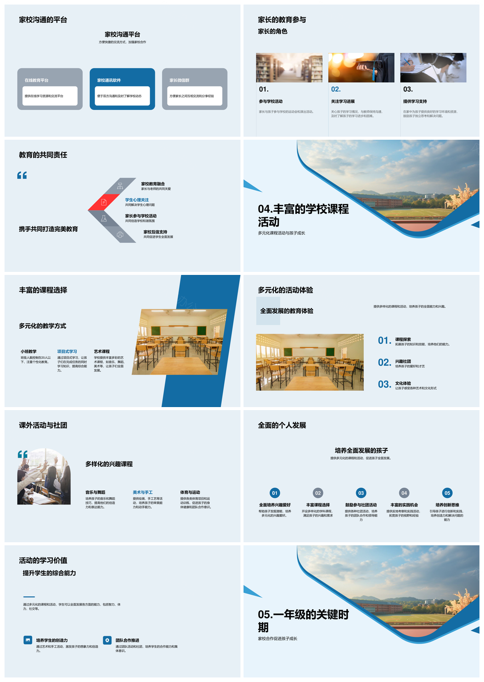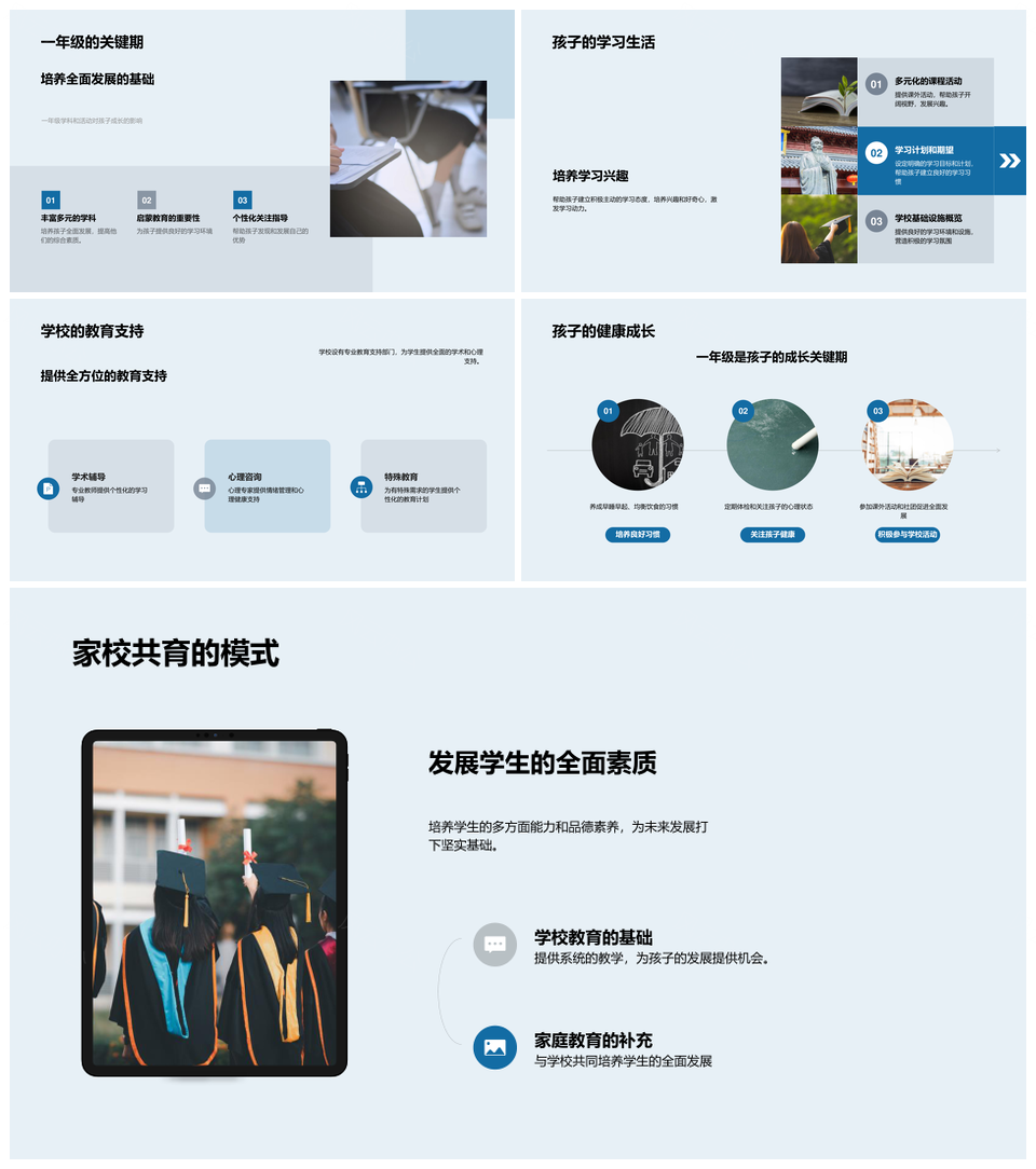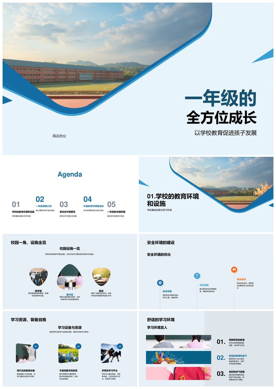 风云办公提供的一年级成长学校安全设施课程家校共建PPT模板,下载格式为pptx,一共33页,作品中文字及图均可以修改和编辑,图片更改请在作品中右键图片并更换,文字修改请直接点击文字进行修改。