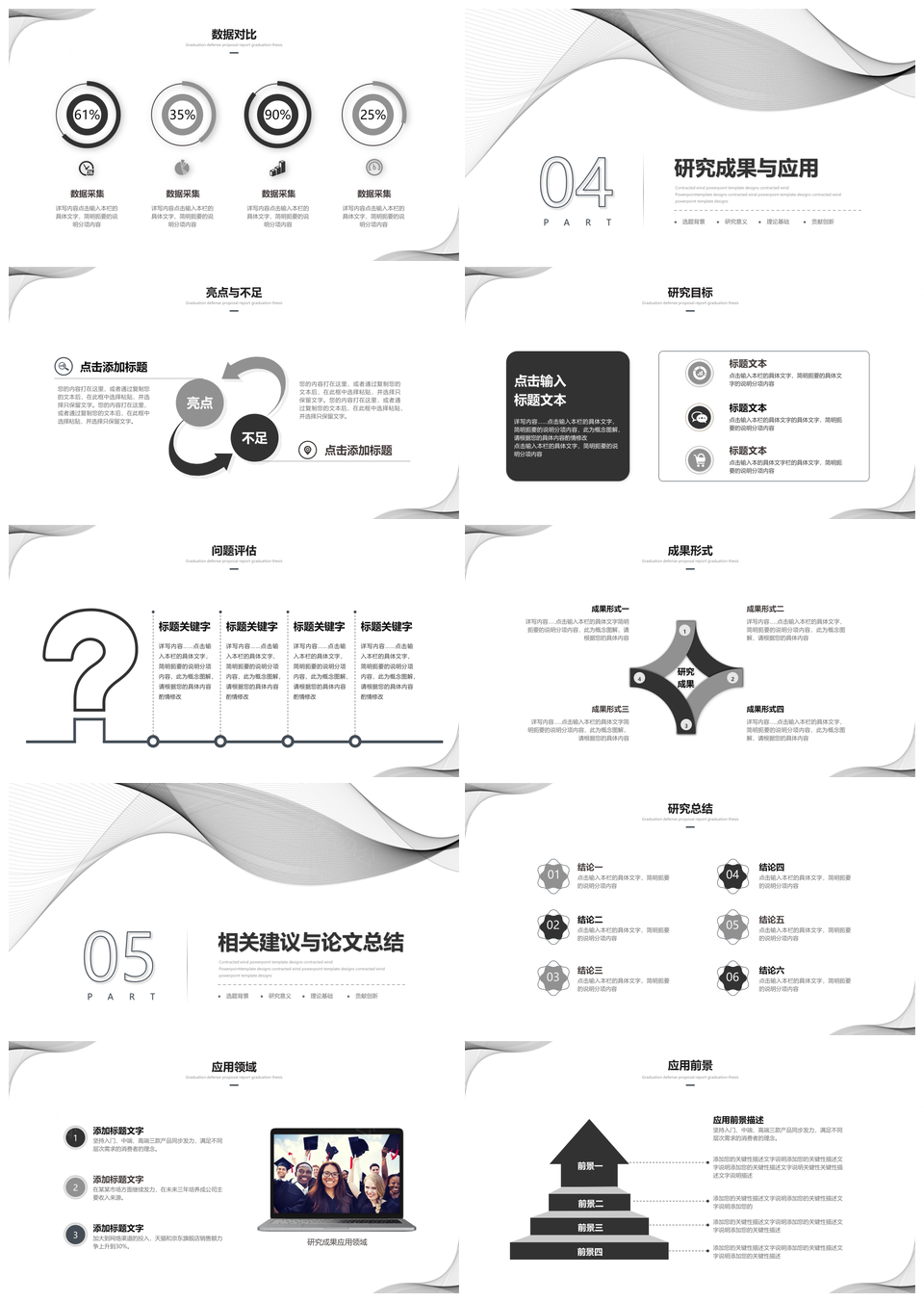 这是一张简约黑白流体线条毕业答辩PPT模板,包含简约、黑白、流体、线条、毕业、答辩等主题内容,也可用作简约黑白流体线条、简约黑白流体、简约流体线条、简约黑白线条、黑白流体线条、流体线条毕业、线条毕业答辩、简约黑白、黑白流体、流体线条、毕业答辩、简约流体、黑白线条、简约线条、流体毕业等PPT场景使用。 风云办公提供的简约黑白流体线条毕业答辩PPT模板,下载格式为pptx,一共32页,作品中文字及图均可以修改和编辑,图片更改请在作品中右键图片并更换,文字修改请直接点击文字进行修改。