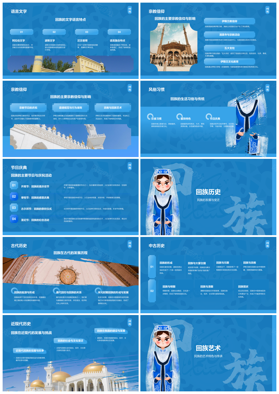 这是一张回族民族文化特色历史风俗信仰分布节日PPT模板,包含回族、民族、文化、特色、历史、风俗、信仰、分布、节日等主题内容,也可用作回族民族文化特色历史、回族民族文化历史风俗、回族民族文化风俗信仰、民族文化特色历史风俗、回族特色历史风俗信仰、回族历史风俗信仰分布、回族风俗信仰分布节日、回族民族文化信仰分布、民族文化历史风俗信仰、民族历史风俗信仰节日、回族文化特色节日分布、回族文化风俗信仰节日、回族历史风俗分布节日、民族风俗信仰分布节日、民族文化信仰分布节日等PPT场景使用。 风云办公提供的回族民族文化特色历史风俗信仰分布节日PPT模板,下载格式为pptx,一共26页,作品中文字及图均可以修改和编辑,图片更改请在作品中右键图片并更换,文字修改请直接点击文字进行修改。