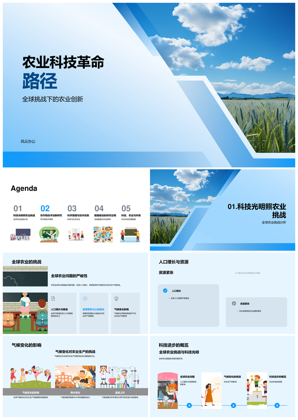 风云办公提供的农业科技革命关键作物新技术应用进展PPT模板,下载格式为pptx,一共29页,作品中文字及图均可以修改和编辑,图片更改请在作品中右键图片并更换,文字修改请直接点击文字进行修改。