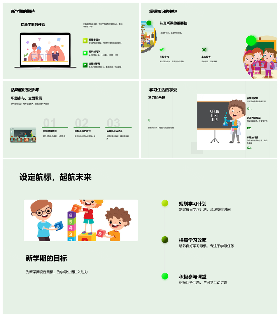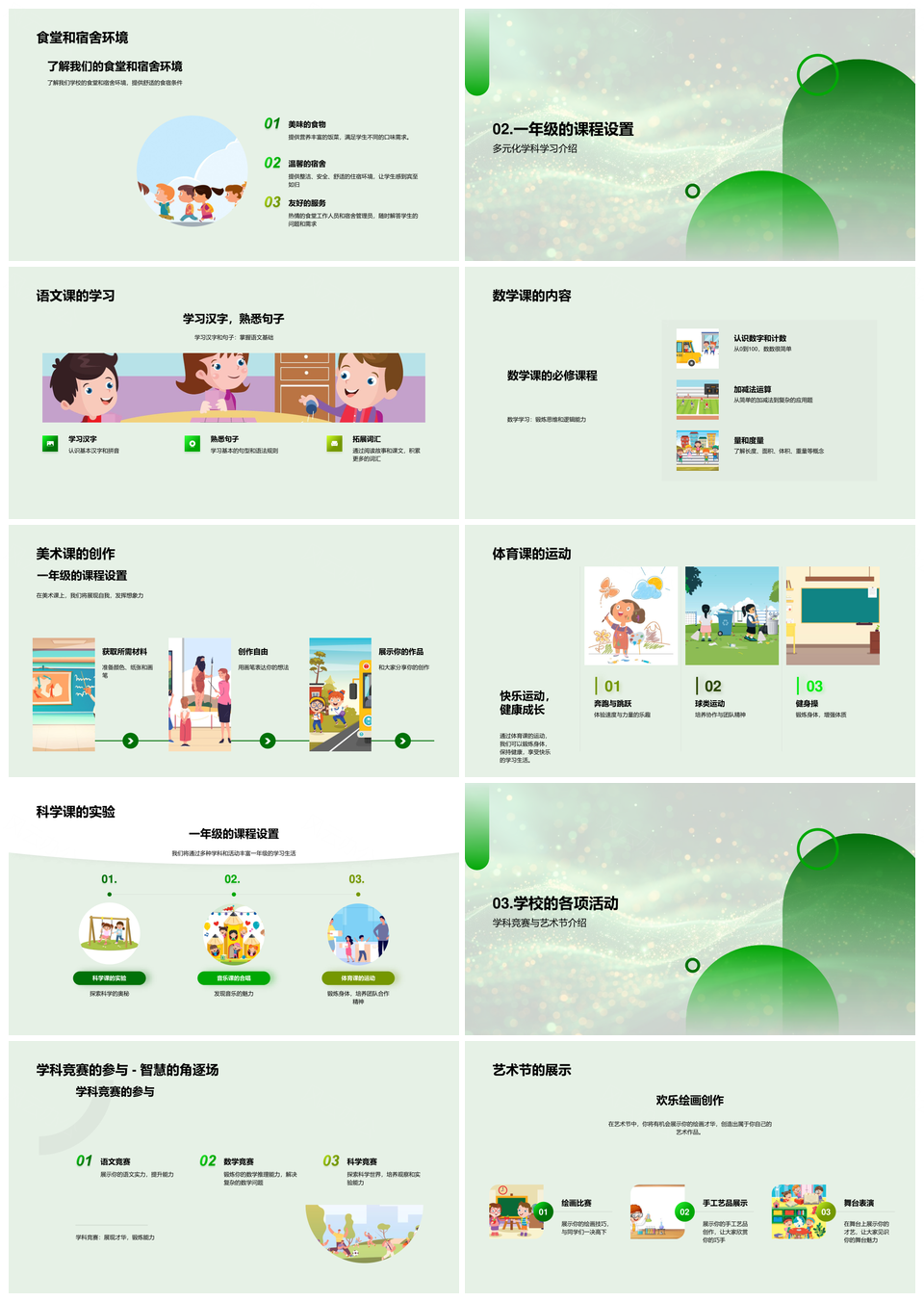 一年级新生学习生活全攻略课程活动竞赛指南PPT模板推荐