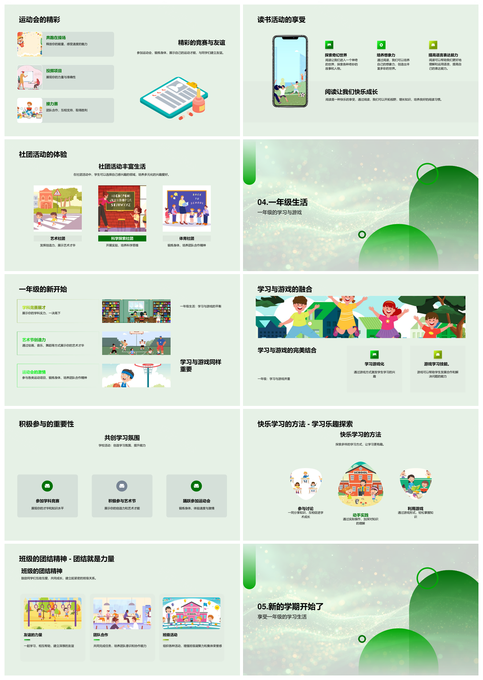 这是一张一年级新生学习生活全攻略课程活动竞赛指南PPT模板,包含一年级、新生、学习、生活、全攻略、课程、活动、竞赛、指南等主题内容,也可用作一年级新生学习生活全攻略、新生学习生活全攻略课程、学习生活全攻略课程活动、全攻略课程活动竞赛指南、新生学习生活全攻略课程、学习生活全攻略课程活动竞赛、全攻略课程活动竞赛指南、一年级新生学习生活、新生学习生活全攻略、学习生活全攻略课程、全攻略课程活动竞赛、课程活动竞赛指南、一年级新生学习、新生学习生活、全攻略课程活动等PPT场景使用。 风云办公提供的一年级新生学习生活全攻略课程活动竞赛指南PPT模板,下载格式为pptx,一共33页,作品中文字及图均可以修改和编辑,图片更改请在作品中右键图片并更换,文字修改请直接点击文字进行修改。