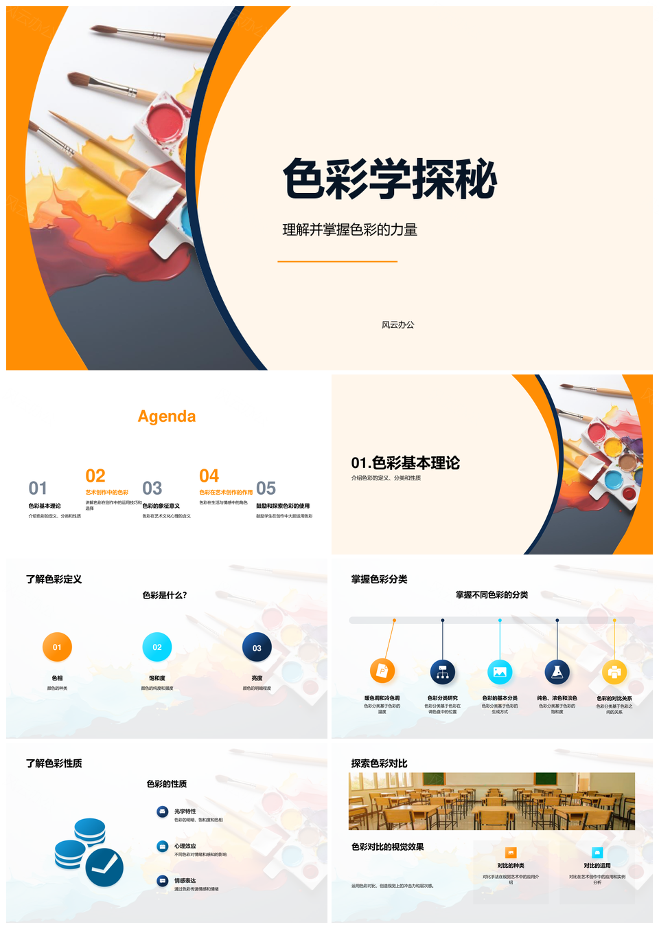 这是一张色彩学艺术学定义分类性质象征运用色轮探秘PPT模板,包含色彩学、艺术学、定义、分类、性质、象征、运用、色轮、探秘等主题内容,也可用作色彩学艺术学定义分类、分类性质象征运用、象征运用色轮探秘、艺术学定义分类性质、定义分类性质象征、性质象征运用色轮、色彩学艺术学定义、艺术学分类性质象征、分类性质象征色轮、色彩学分类性质象征、艺术学象征运用色轮、定义性质象征运用、运用色轮探秘性质、色彩学艺术学象征、定义分类色轮探秘等PPT场景使用。 风云办公提供的色彩学艺术学定义分类性质象征运用色轮探秘PPT模板,下载格式为pptx,一共25页,作品中文字及图均可以修改和编辑,图片更改请在作品中右键图片并更换,文字修改请直接点击文字进行修改。