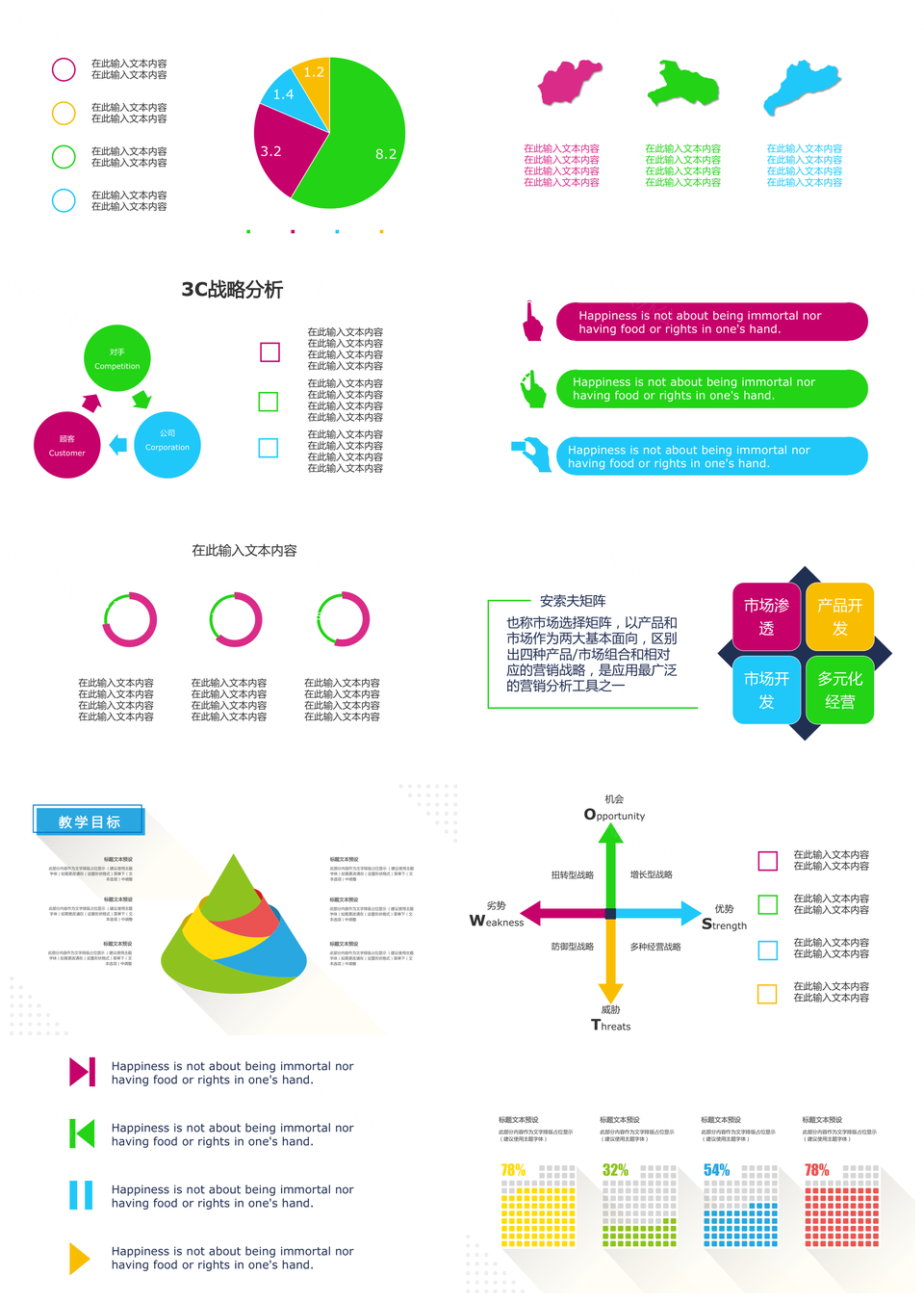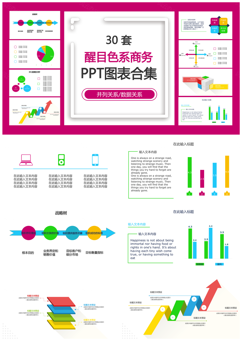 这是一张醒目色系商务PPT模板,包含醒目色系、商务等主题内容,也可用作醒目、色系、商务 醒目色系商务、醒目色系、色系商务、醒目商务等PPT场景使用。 风云办公提供的醒目色系商务PPT模板,下载格式为pptx,一共31页,作品中文字及图均可以修改和编辑,图片更改请在作品中右键图片并更换,文字修改请直接点击文字进行修改。