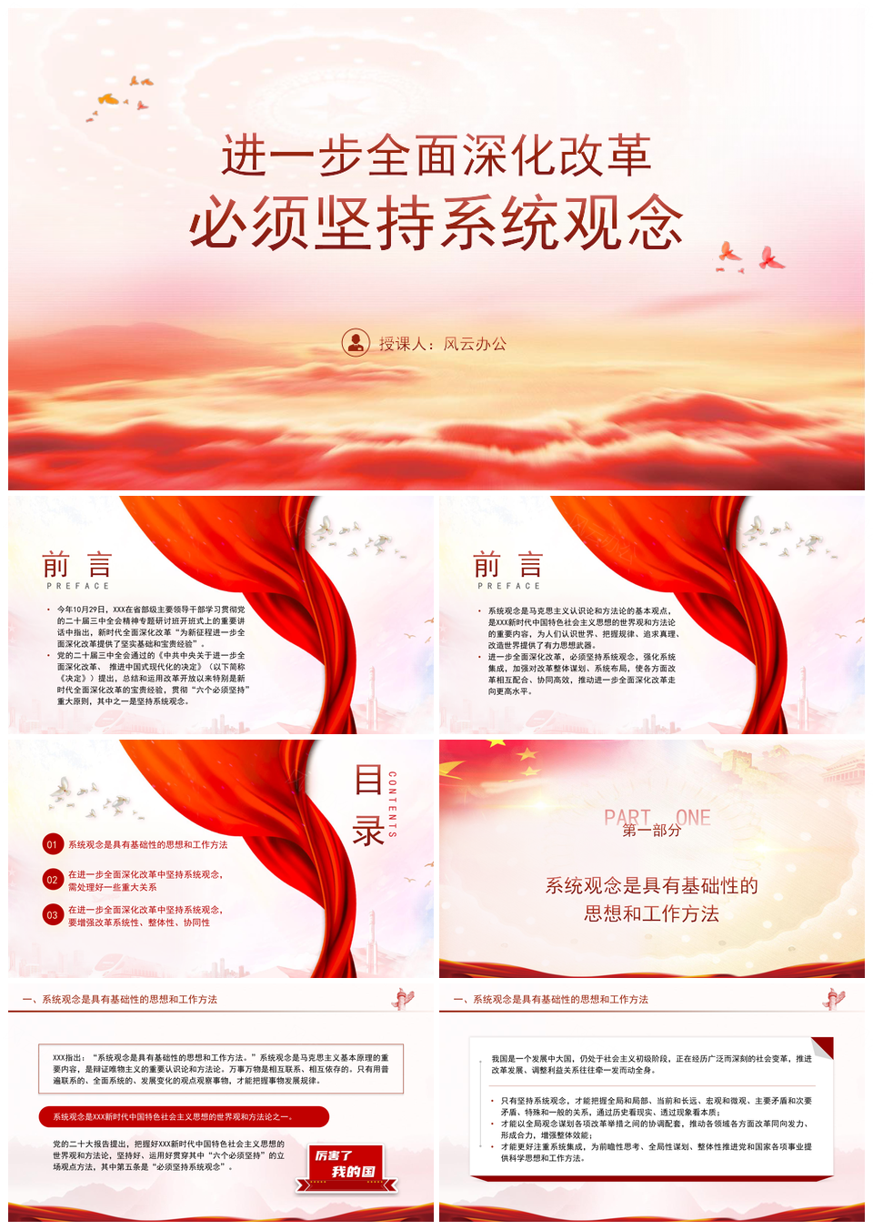 风云办公提供的全面深化改革坚持系统观念课件,下载格式为pptx,一共30页,作品中文字及图均可以修改和编辑,图片更改请在作品中右键图片并更换,文字修改请直接点击文字进行修改。
