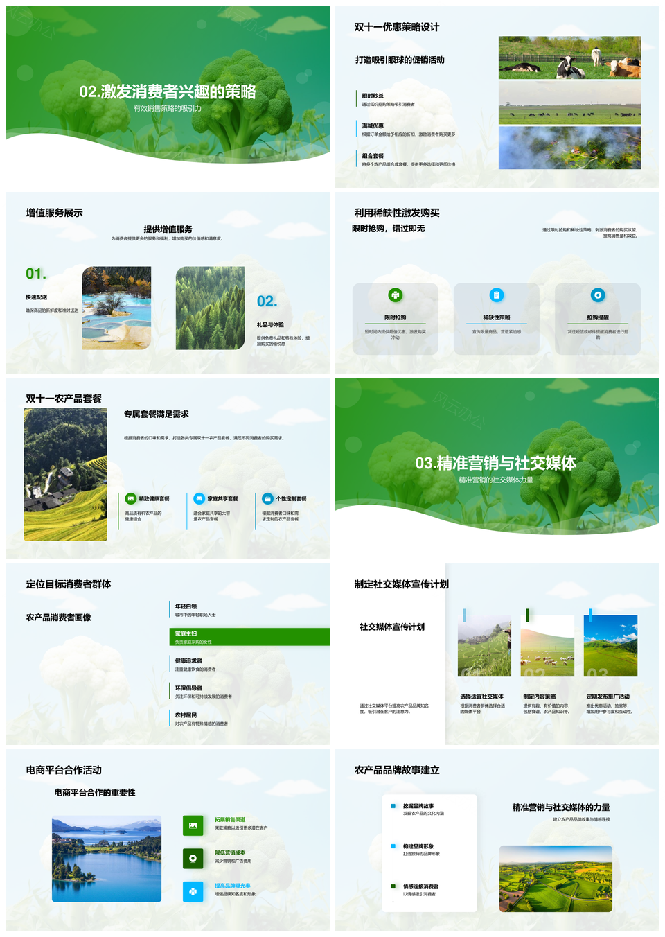 这是一张农产品电商双十一营销策略优惠设计社交指南PPT模板,包含农产品、电商、双十一、营销策略、优惠设计、社交指南等主题内容,也可用作农产品电商双十一营销策略、电商双十一营销策略优惠、双十一营销策略优惠设计、营销策略优惠设计社交、优惠设计社交指南、农产品电商双十一优惠设计、电商双十一优惠设计社交、双十一优惠设计社交指南、农产品电商双十一优惠、电商双十一优惠设计、双十一优惠设计社交、优惠设计社交指南、农产品电商双十一、电商双十一营销策略、双十一营销策略优惠等PPT场景使用。 风云办公提供的农产品电商双十一营销策略优惠设计社交指南PPT模板,下载格式为pptx,一共28页,作品中文字及图均可以修改和编辑,图片更改请在作品中右键图片并更换,文字修改请直接点击文字进行修改。