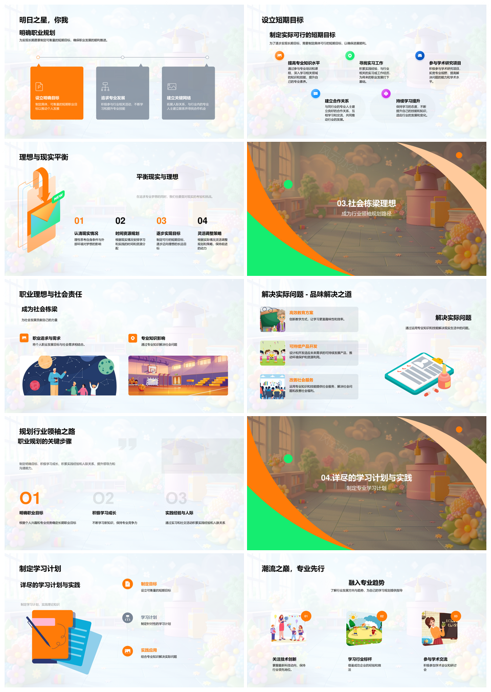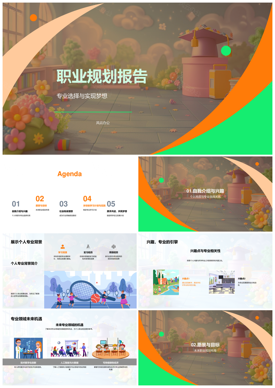 这是一张职业规划专业选择助力梦想实现学习成长汇报PPT模板,包含职业规划、专业选择、助力、梦想实现、学习成长、汇报等主题内容,也可用作职业规划专业选择助力梦想实现、职业规划专业选择助力、职业规划专业选择、专业选择助力梦想实现学习成长、专业选择助力梦想实现、专业选择助力、助力梦想实现学习成长汇报、助力梦想实现学习成长、助力梦想实现、梦想实现学习成长汇报、梦想实现学习成长、学习成长汇报、职业规划助力梦想实现学习成长、职业规划助力梦想实现、职业规划专业选择学习成长汇报等PPT场景使用。 风云办公提供的职业规划专业选择助力梦想实现学习成长汇报PPT模板,下载格式为pptx,一共23页,作品中文字及图均可以修改和编辑,图片更改请在作品中右键图片并更换,文字修改请直接点击文字进行修改。