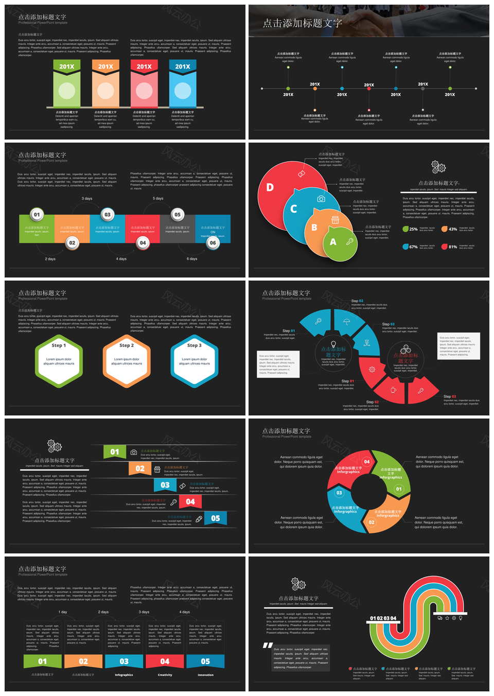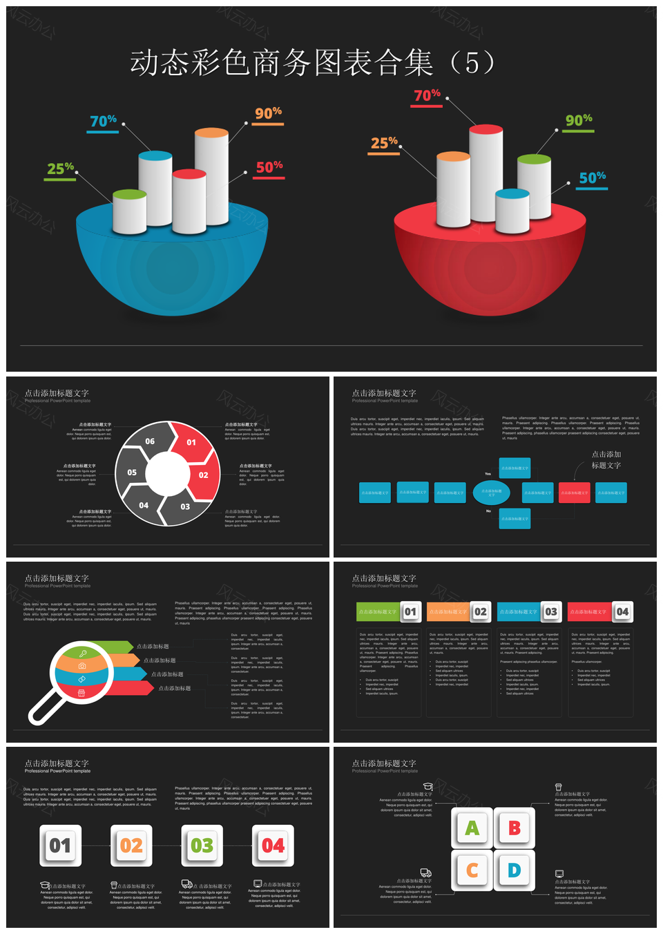 彩色动态精美设计多图表年度总结商业计划书商务PPT模板