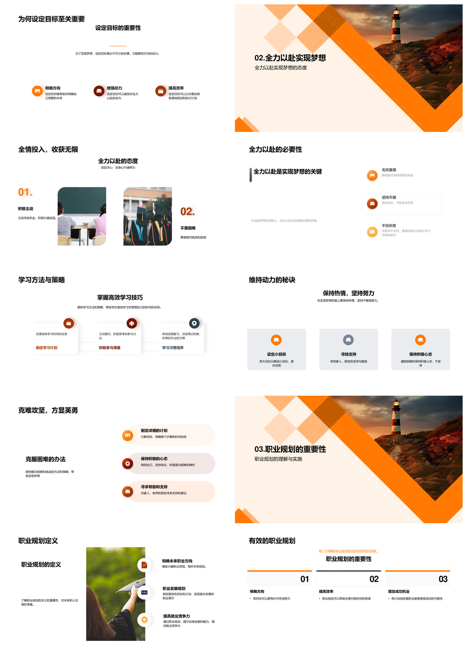 风云办公提供的理想灯塔指引职业航向逐梦前行PPT模板,下载格式为pptx,一共33页,作品中文字及图均可以修改和编辑,图片更改请在作品中右键图片并更换,文字修改请直接点击文字进行修改。