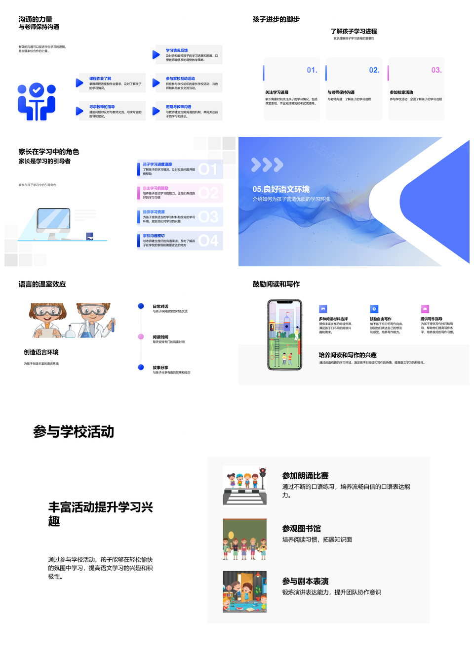 家校共育教学大纲家长会促语文学习进度PPT模板
