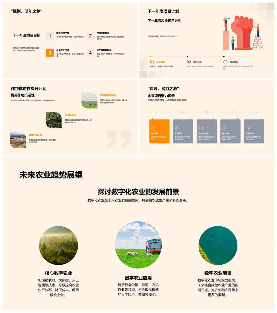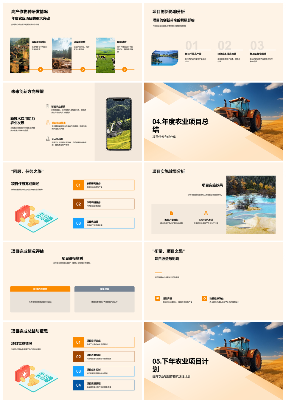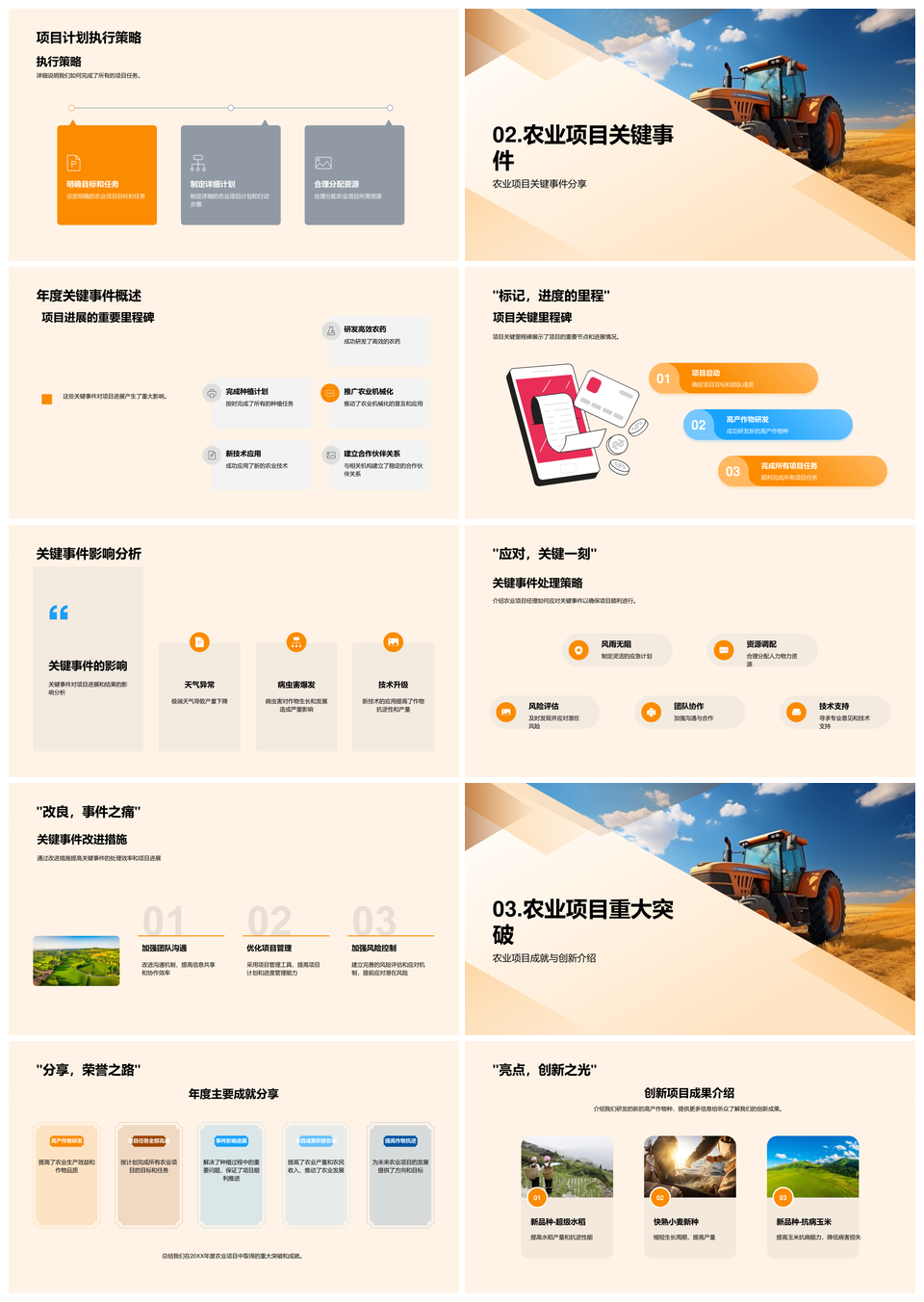 农业项目执行月度策略回顾展望气候变化麦田挑战PPT模板