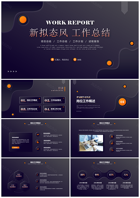 深色新拟态风年度季度工作总结述职报告PPT模板