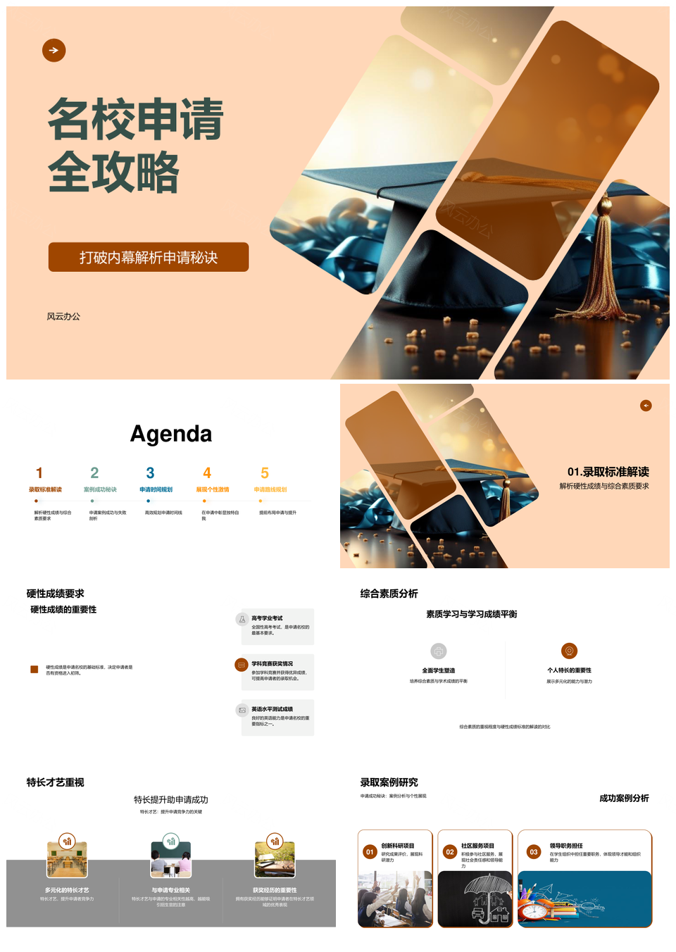这是一张名校申请内幕秘诀硬成绩素质特长案例时间线毕业帽PPT模板,包含名校、申请、内幕、秘诀、硬成绩、素质、特长、案例、时间线、毕业帽等主题内容,也可用作名校申请内幕秘诀、硬成绩素质特长案例、案例时间线毕业帽、内幕秘诀硬成绩素质、素质特长案例时间线、申请内幕秘诀、秘诀硬成绩素质、硬成绩素质特长、素质特长案例、特长案例时间线、时间线毕业帽、名校申请、内幕秘诀、硬成绩素质、特长案例等PPT场景使用。 风云办公提供的名校申请内幕秘诀硬成绩素质特长案例时间线毕业帽PPT模板,下载格式为pptx,一共33页,作品中文字及图均可以修改和编辑,图片更改请在作品中右键图片并更换,文字修改请直接点击文字进行修改。