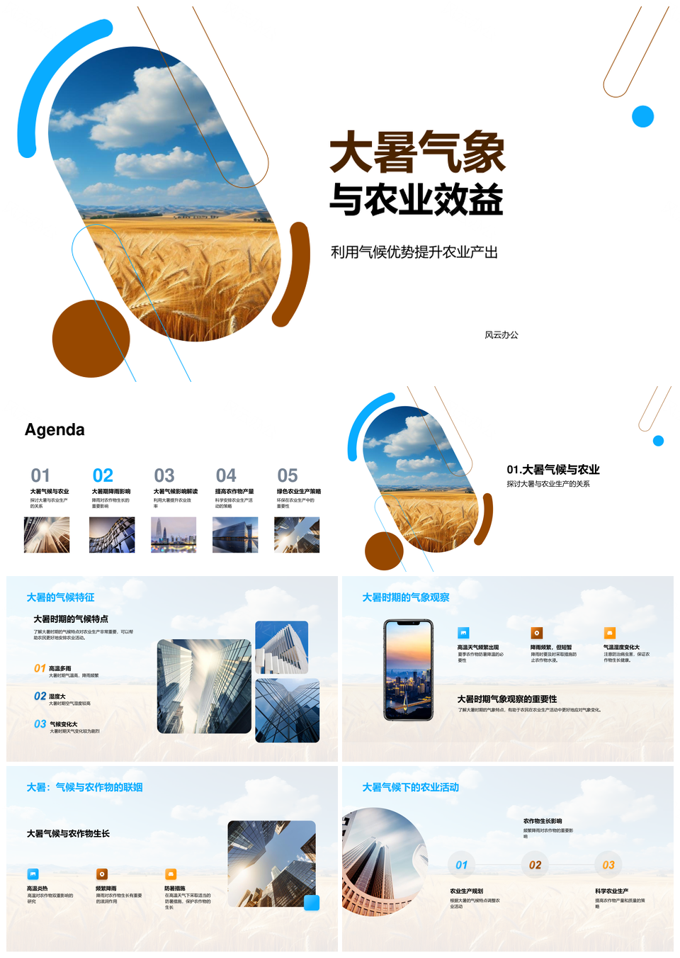 风云办公提供的大暑气候优势助农产效益PPT模板,下载格式为pptx,一共28页,作品中文字及图均可以修改和编辑,图片更改请在作品中右键图片并更换,文字修改请直接点击文字进行修改。