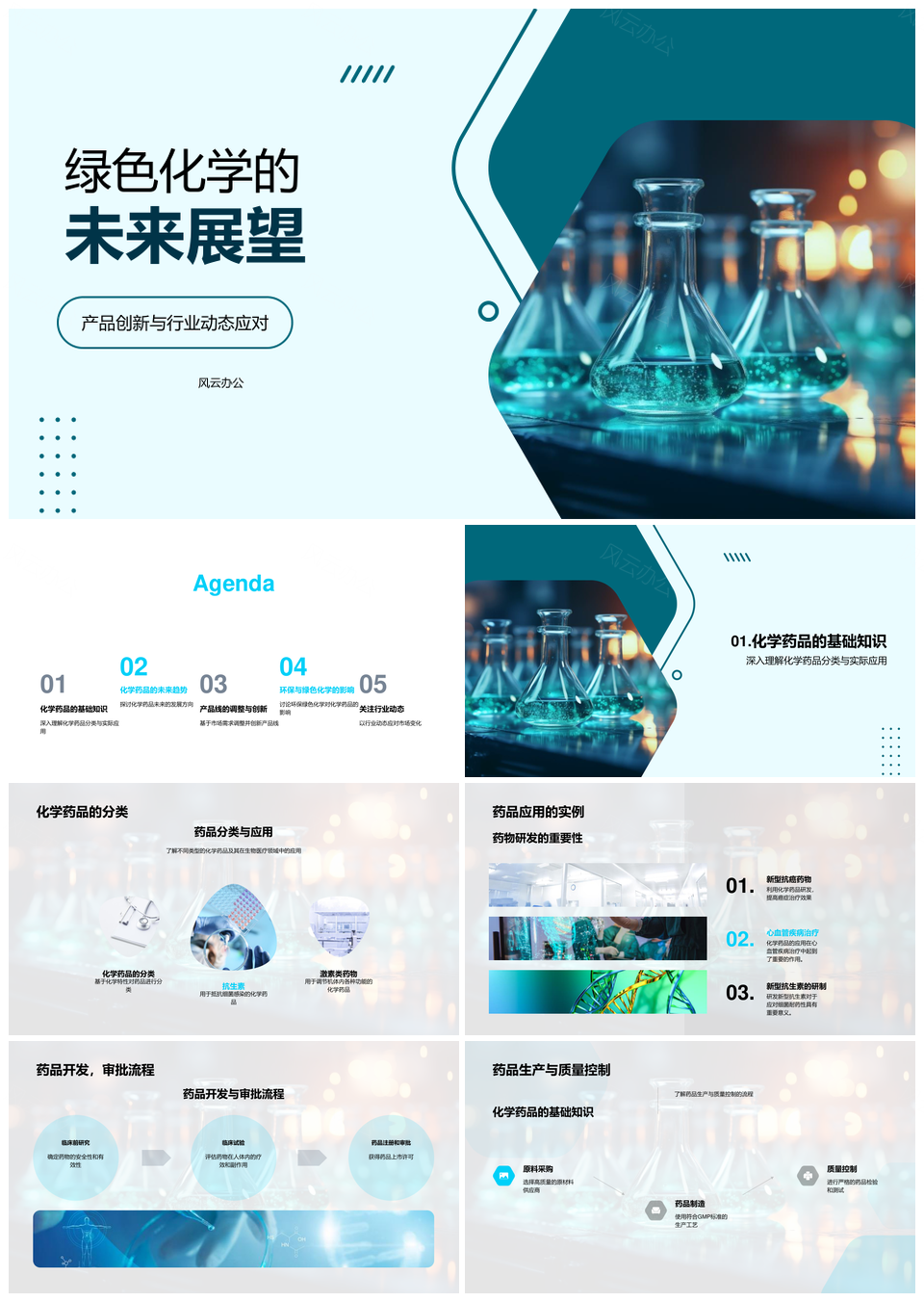 风云办公提供的绿色化学驱动药品研发生产创新趋势PPT模板,下载格式为pptx,一共33页,作品中文字及图均可以修改和编辑,图片更改请在作品中右键图片并更换,文字修改请直接点击文字进行修改。