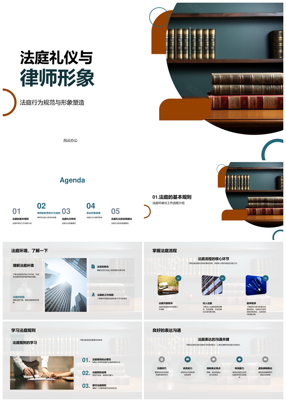 风云办公提供的律师职责与法庭礼仪形象规则流程PPT模板,下载格式为pptx,一共24页,作品中文字及图均可以修改和编辑,图片更改请在作品中右键图片并更换,文字修改请直接点击文字进行修改。