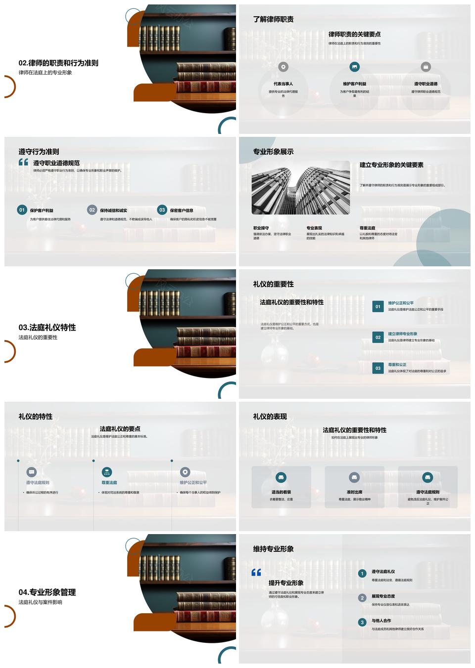 这是一张律师职责与法庭礼仪形象规则流程PPT模板,包含律师职责、法庭礼仪、形象规则、流程等主题内容,也可用作律师职责法庭礼仪形象规则流程、律师职责法庭礼仪规则流程、律师职责法庭礼仪形象、律师职责法庭礼仪流程、法庭礼仪形象规则流程、律师职责形象规则流程、律师职责规则流程、法庭礼仪规则流程、形象规则流程、律师职责法庭礼仪、法庭礼仪形象规则、法庭礼仪规则流程、形象规则、规则流程、律师职责法庭礼仪形象规则等PPT场景使用。