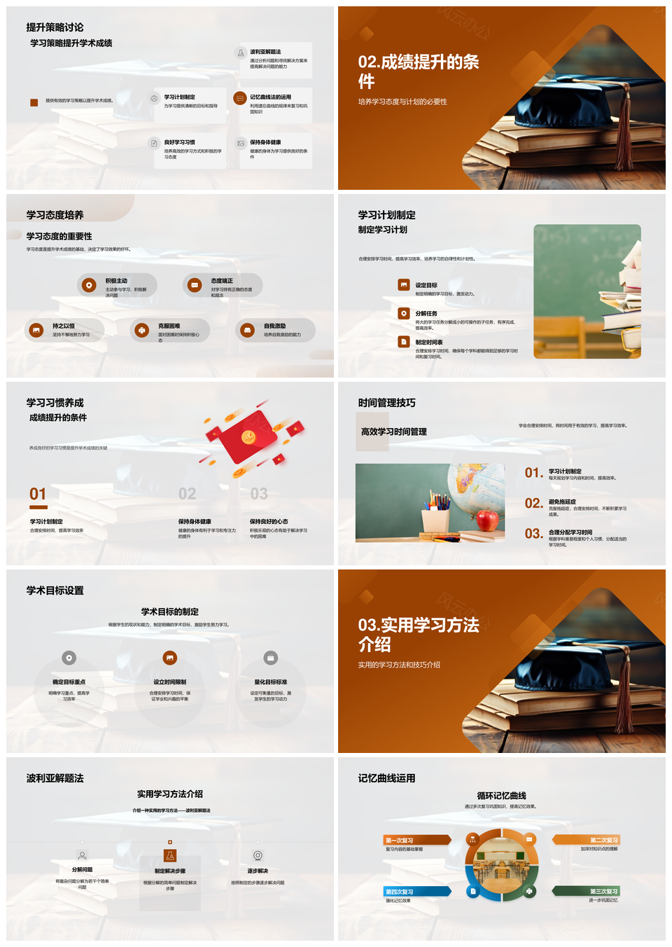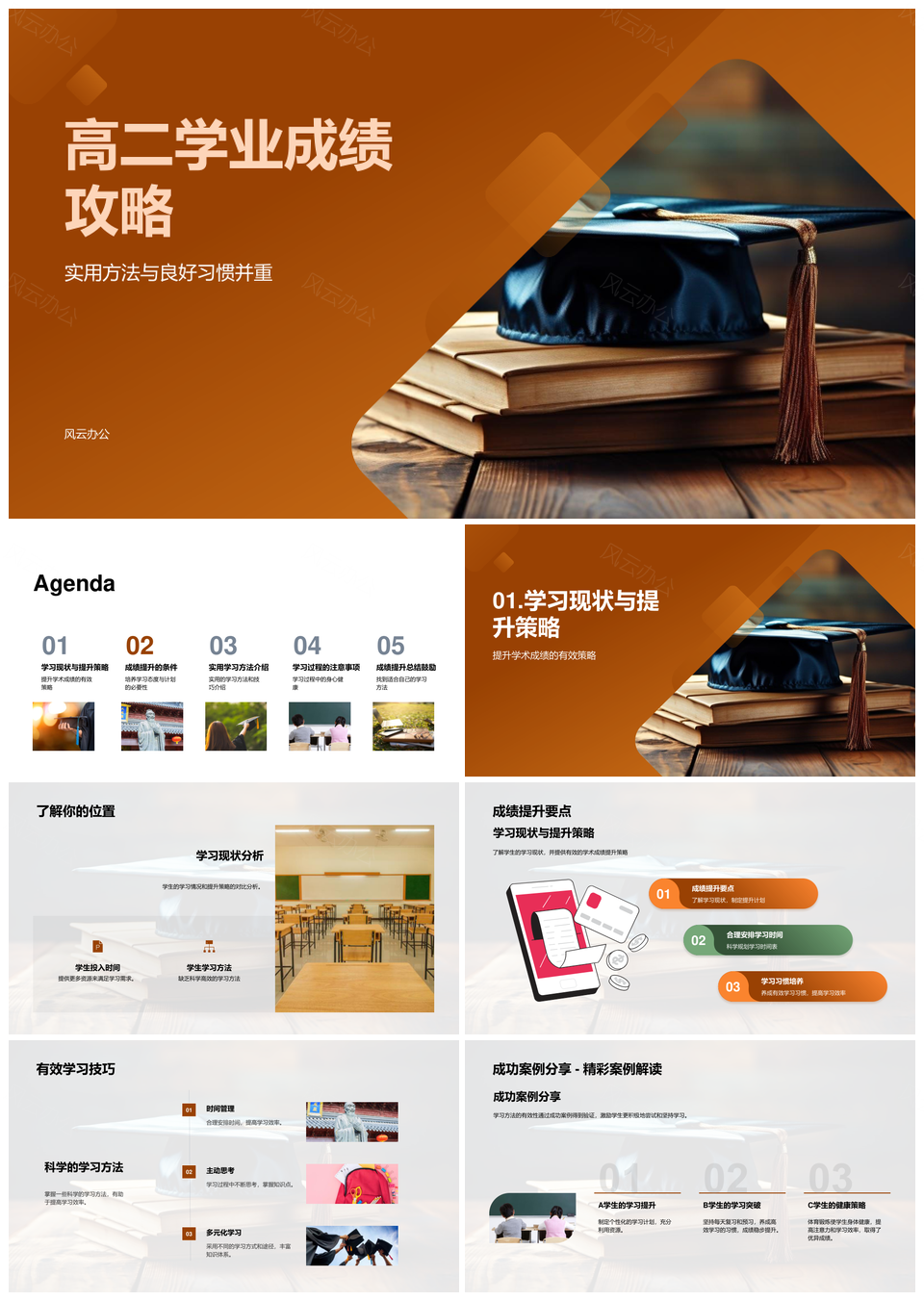 高二学业成绩提升攻略实用方法习惯计划案例PPT模板推荐