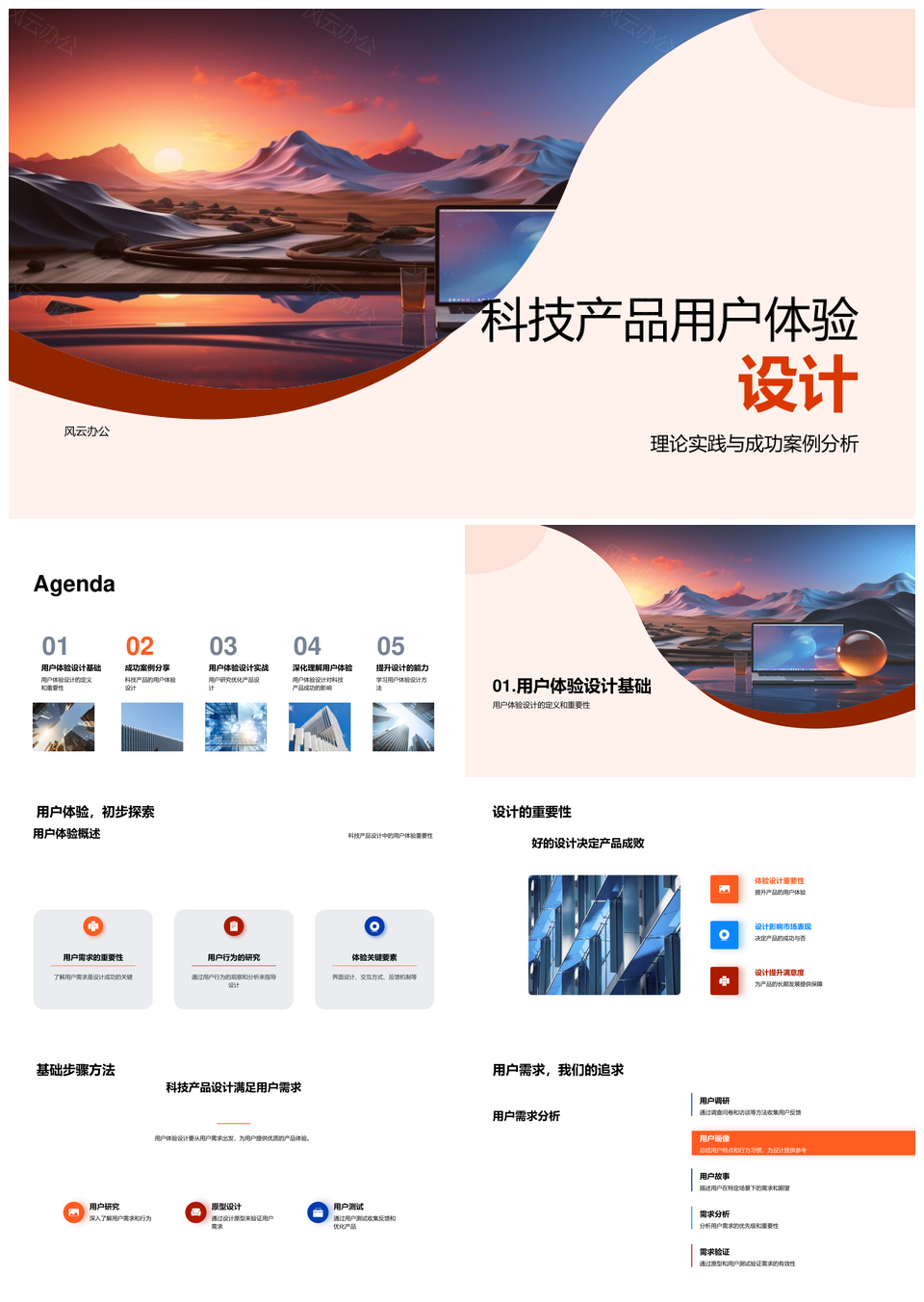 风云办公提供的科技产品用户体验优化设计研究分析PPT模板,下载格式为pptx,一共33页,作品中文字及图均可以修改和编辑,图片更改请在作品中右键图片并更换,文字修改请直接点击文字进行修改。