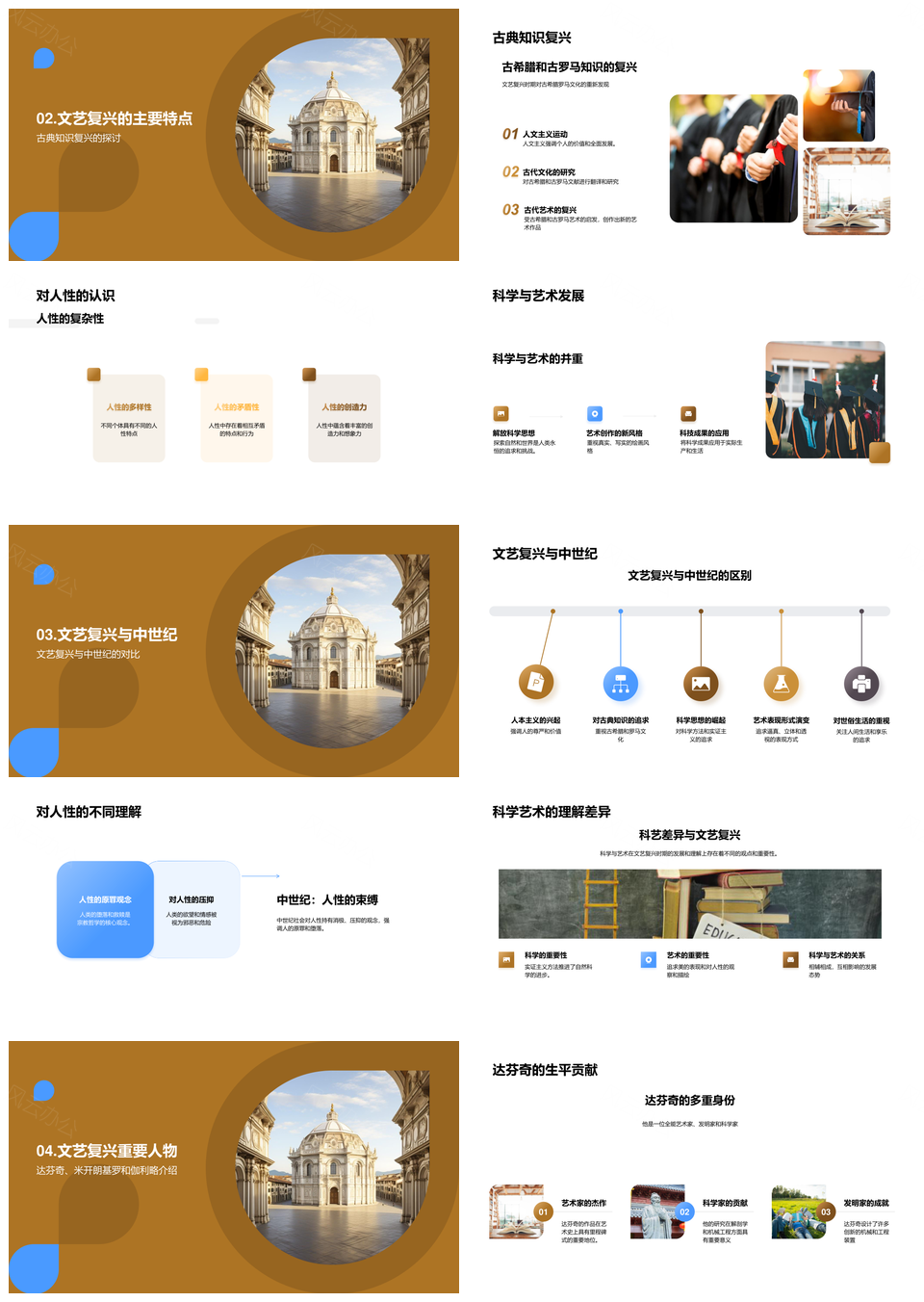 文艺复兴历史转折古典复兴人性科学艺术PPT模板
