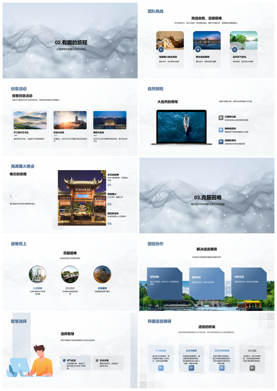 这是一张毕业旅行XX岛多元文化探秘艺术手工海滩篝火独立预算PPT模板,包含毕业旅行、XX岛、多元文化、探秘、艺术、手工、海滩、篝火、独立预算等主题内容,也可用作毕业旅行XX岛多元文化探秘、XX岛多元文化探秘艺术手工、多元文化探秘艺术手工海滩、探秘艺术手工海滩篝火、艺术手工海滩篝火独立预算、毕业旅行XX岛艺术手工、XX岛多元文化海滩、多元文化探秘海滩篝火、艺术手工海滩独立预算、毕业旅行探秘艺术、XX岛海滩篝火、多元文化艺术手工、探秘海滩篝火、毕业旅行独立预算、艺术手工篝火等PPT场景使用。 风云办公提供的毕业旅行XX岛多元文化探秘艺术手工海滩篝火独立预算PPT模板,下载格式为pptx,一共28页,作品中文字及图均可以修改和编辑,图片更改请在作品中右键图片并更换,文字修改请直接点击文字进行修改。