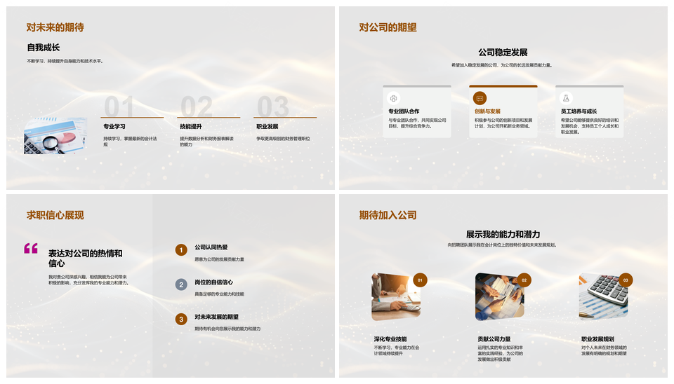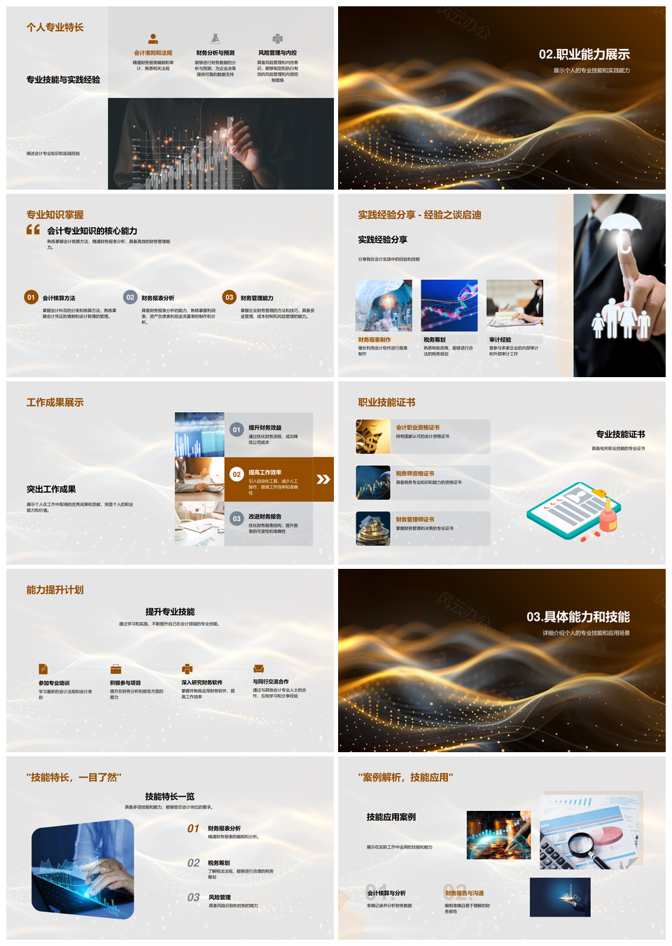 风云办公提供的会计岗位竞聘教育技能经验职业规划PPT模板,下载格式为pptx,一共32页,作品中文字及图均可以修改和编辑,图片更改请在作品中右键图片并更换,文字修改请直接点击文字进行修改。