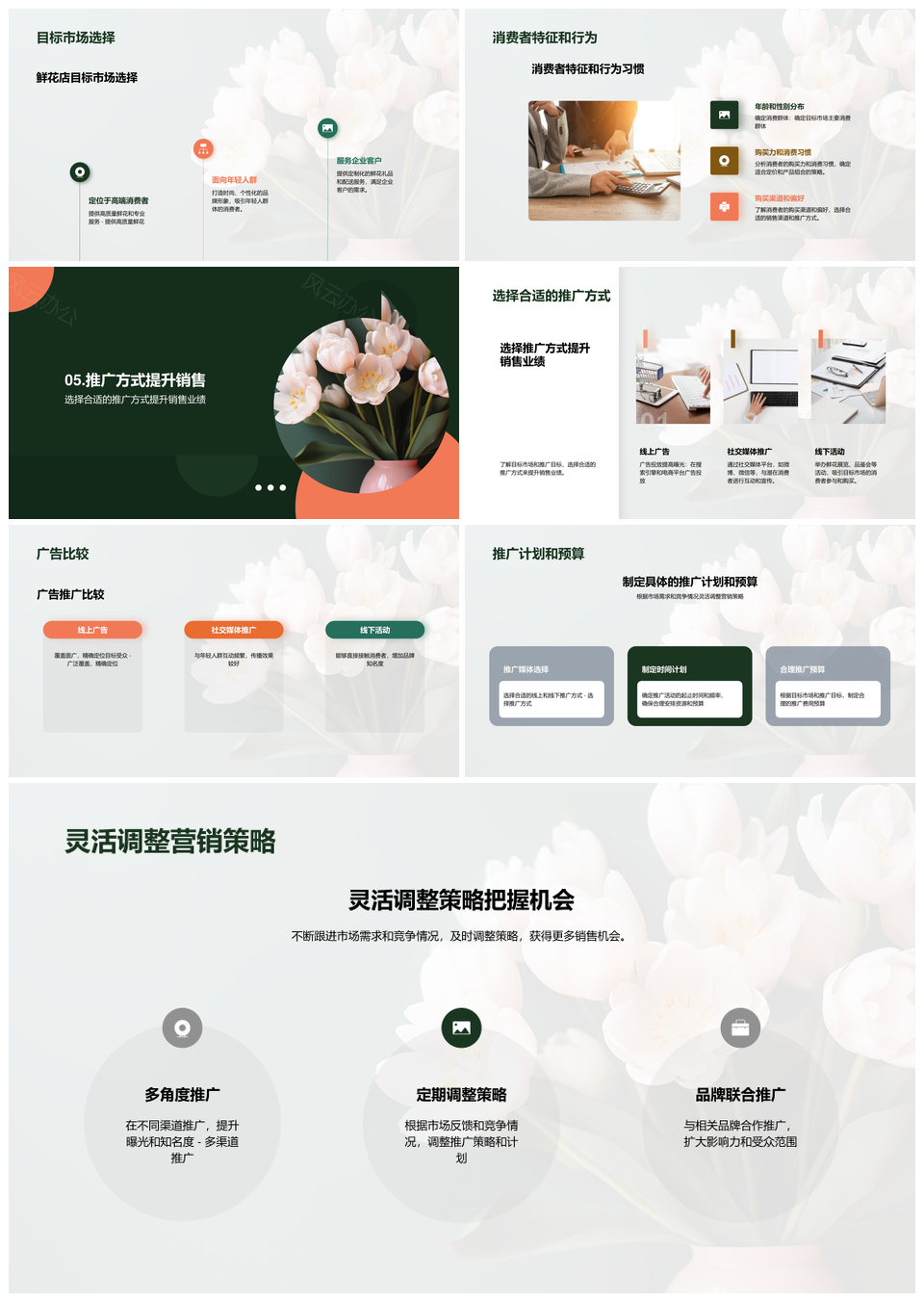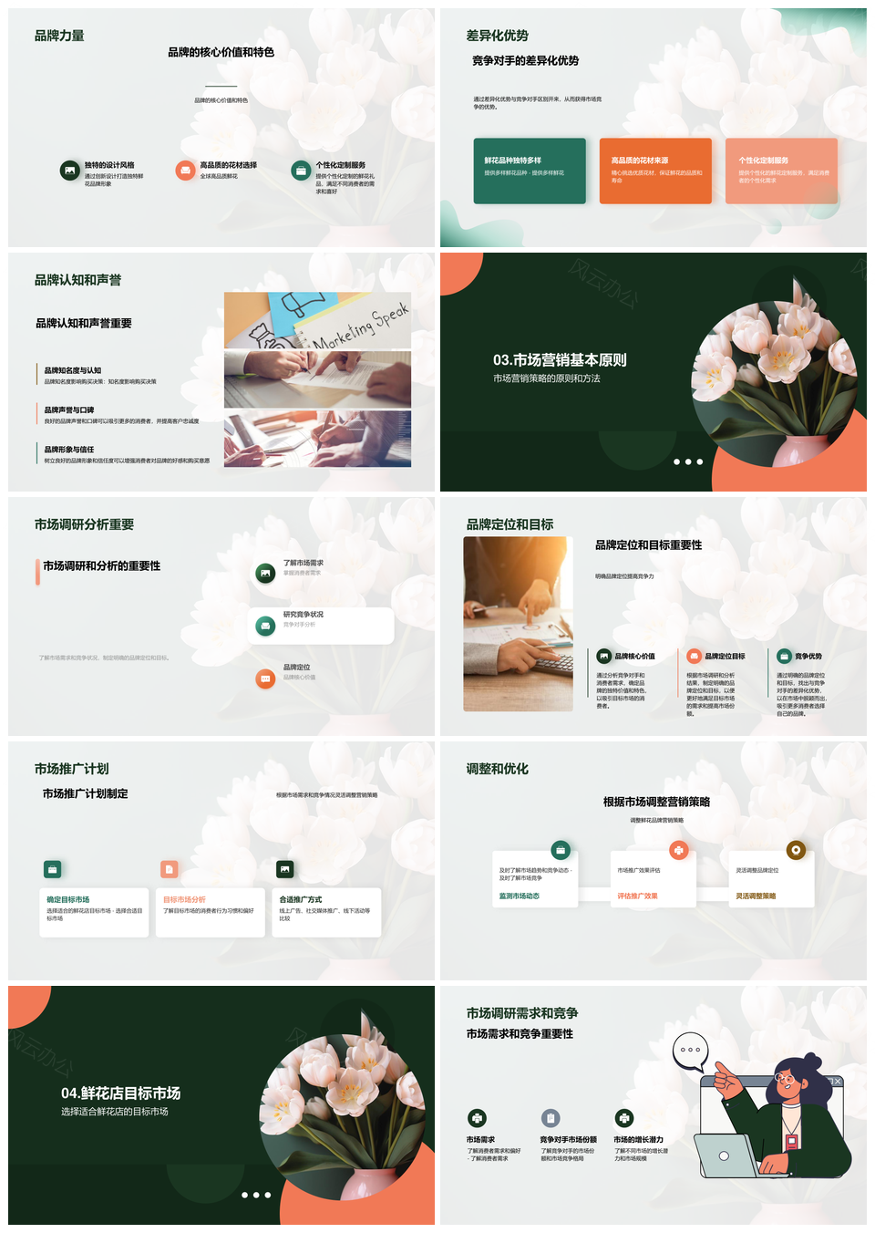 这是一张鲜花品牌营销策略市场增长趋势竞争分析PPT模板,包含鲜花品牌、营销策略、市场增长、趋势、竞争分析等主题内容,也可用作鲜花品牌营销策略市场增长趋势、品牌营销策略市场增长趋势竞争、营销策略市场增长趋势竞争分析、策略市场增长趋势竞争分析、品牌营销策略市场增长趋势、营销策略市场增长趋势竞争、策略市场增长趋势竞争、市场增长趋势竞争分析、品牌营销策略市场增长、营销策略市场增长趋势、策略市场增长趋势、市场增长趋势竞争、营销策略市场增长、策略市场增长趋势、市场增长趋势等PPT场景使用。 风云办公提供的鲜花品牌营销策略市场增长趋势竞争分析PPT模板,下载格式为pptx,一共25页,作品中文字及图均可以修改和编辑,图片更改请在作品中右键图片并更换,文字修改请直接点击文字进行修改。
