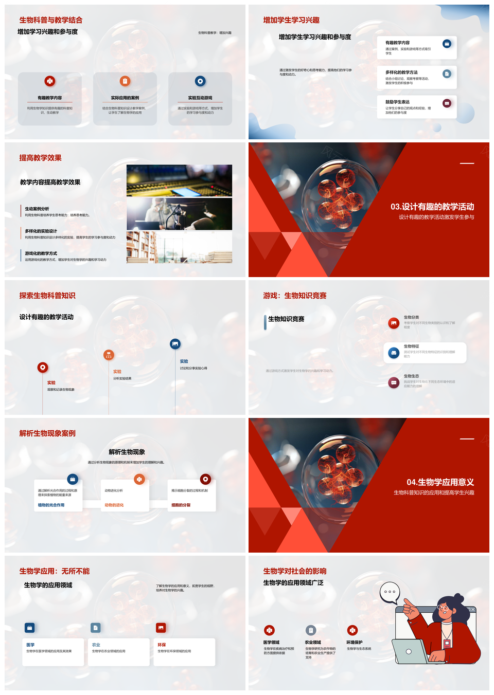 这是一张初中生物教师应用显微镜提升教学参与度PPT模板,包含初中生物教师、应用、显微镜、提升、教学、参与度等主题内容,也可用作初中生物教师应用显微镜、生物教师应用显微镜提升、教师应用显微镜提升教学、应用显微镜提升教学参与度、显微镜提升教学参与度、初中生物教师应用、生物教师应用显微镜、教师应用显微镜提升、应用显微镜提升教学、提升教学参与度、应用显微镜、显微镜提升、提升教学、教学参与度、生物教师应用等PPT场景使用。 风云办公提供的初中生物教师应用显微镜提升教学参与度PPT模板,下载格式为pptx,一共23页,作品中文字及图均可以修改和编辑,图片更改请在作品中右键图片并更换,文字修改请直接点击文字进行修改。