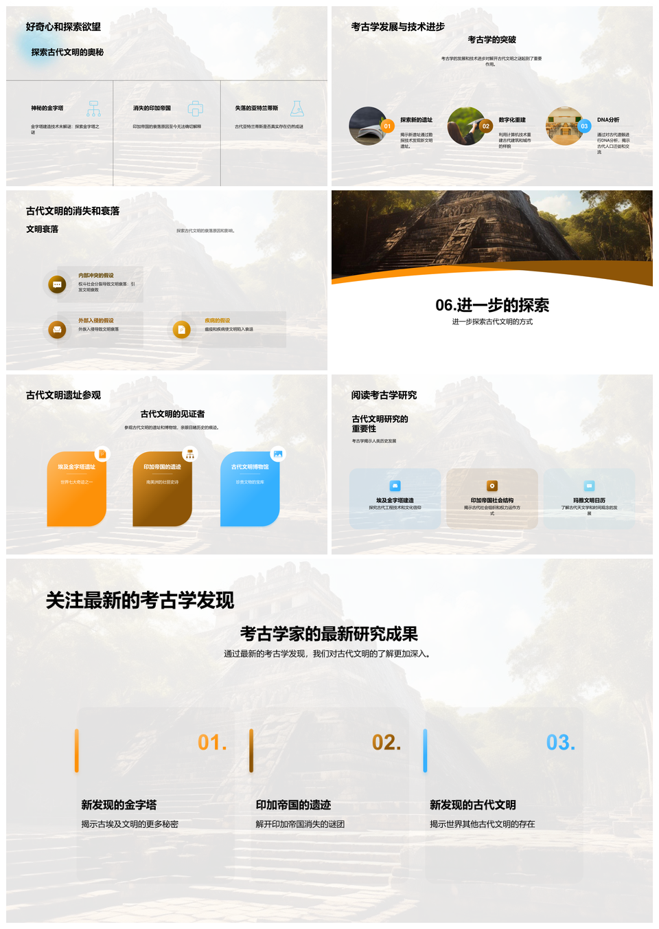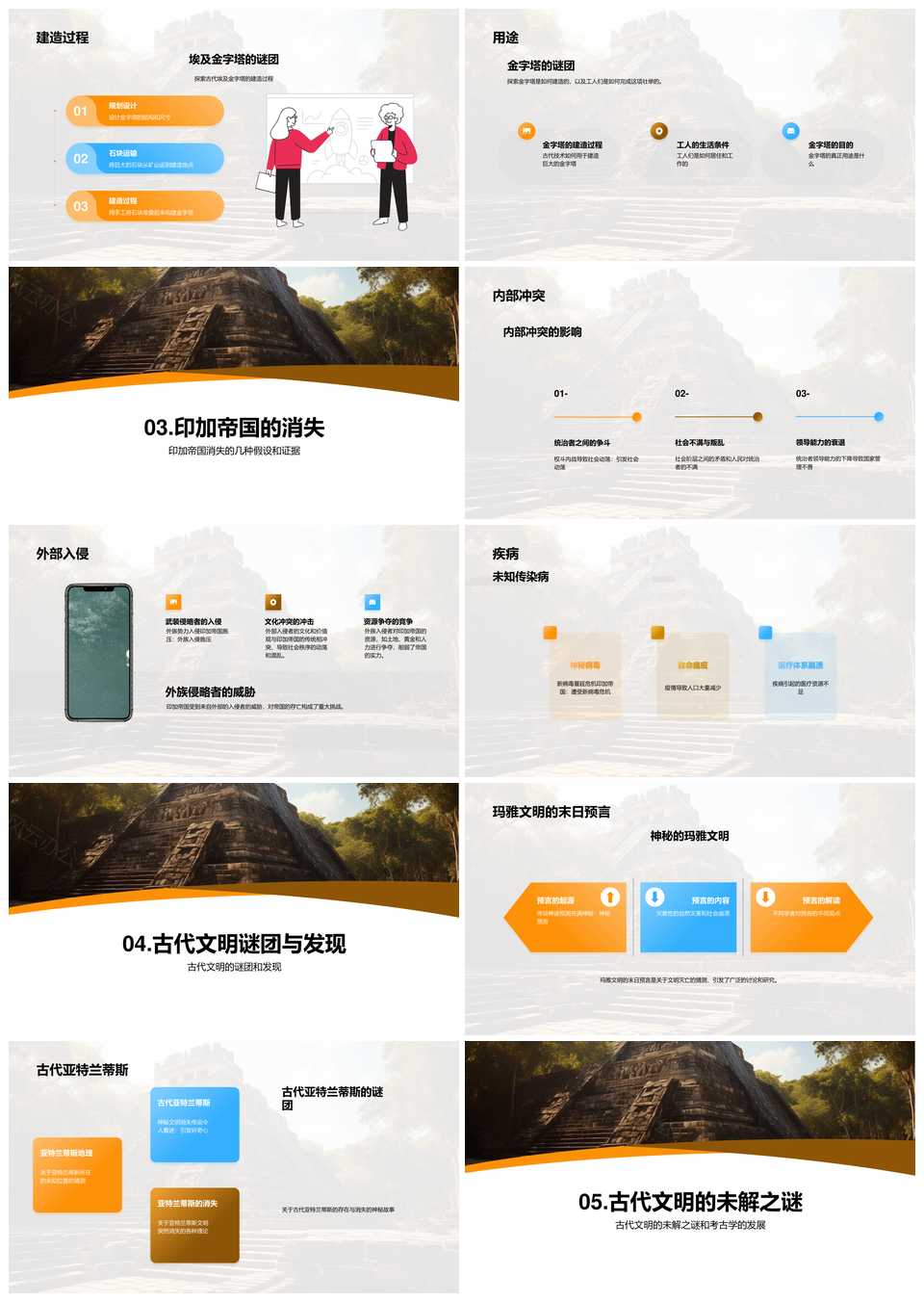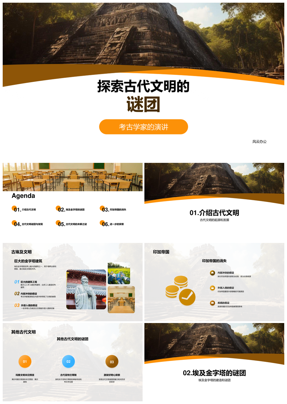 这是一张考古学家探索古埃及印加消失与金字塔建造PPT模板,包含考古学家、探索、古埃及、印加、消失、金字塔、建造等主题内容,也可用作考古学家探索古埃及金字塔建造、考古学家探索古埃及印加消失、古埃及金字塔建造探索、印加消失金字塔建造探索、探索古埃及金字塔建造、考古学家古埃及金字塔建造、印加消失与金字塔建造、考古学家探索金字塔建造、古埃及印加消失探索、金字塔建造考古学家探索、古埃及金字塔考古学家、探索印加消失金字塔、考古学家探索印加、古埃及金字塔建造、印加消失金字塔等PPT场景使用。 风云办公提供的考古学家探索古埃及印加消失与金字塔建造PPT模板,下载格式为pptx,一共25页,作品中文字及图均可以修改和编辑,图片更改请在作品中右键图片并更换,文字修改请直接点击文字进行修改。