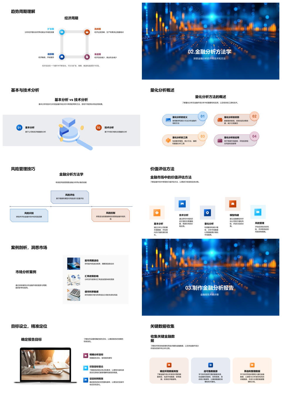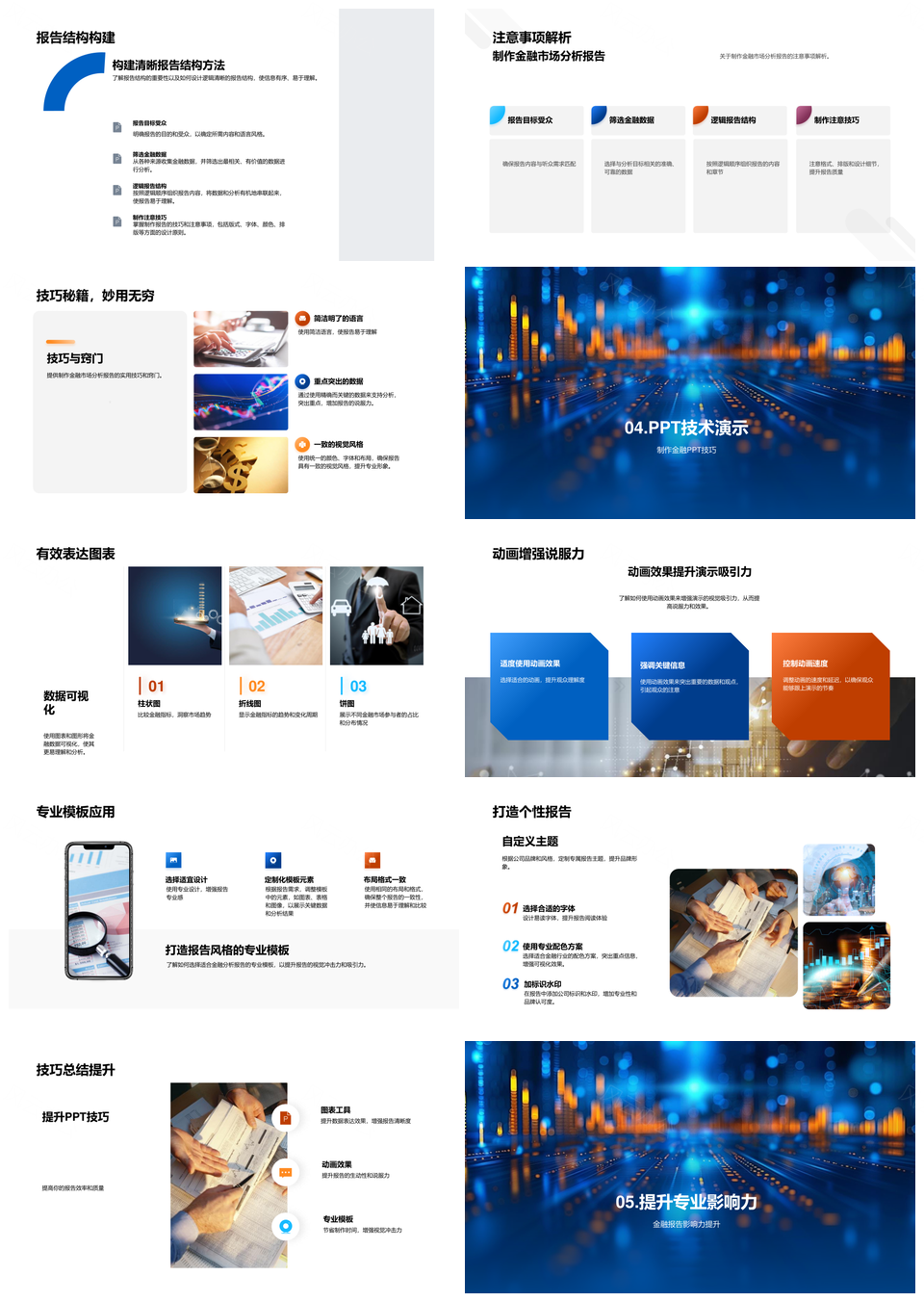 风云办公提供的金融分析报告制作PPT技巧与商务市场培训,下载格式为pptx,一共32页,作品中文字及图均可以修改和编辑,图片更改请在作品中右键图片并更换,文字修改请直接点击文字进行修改。