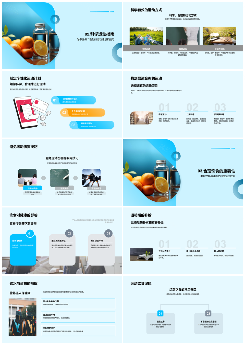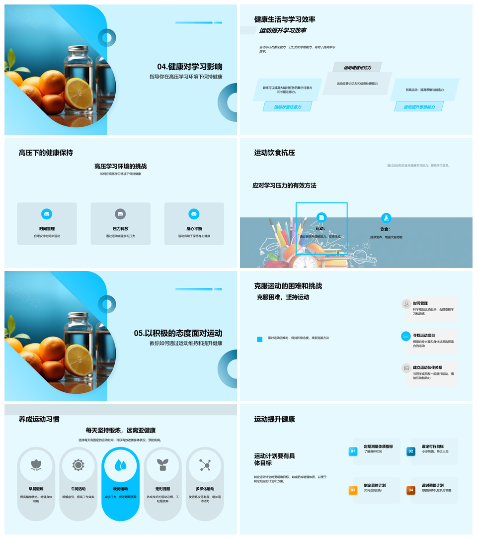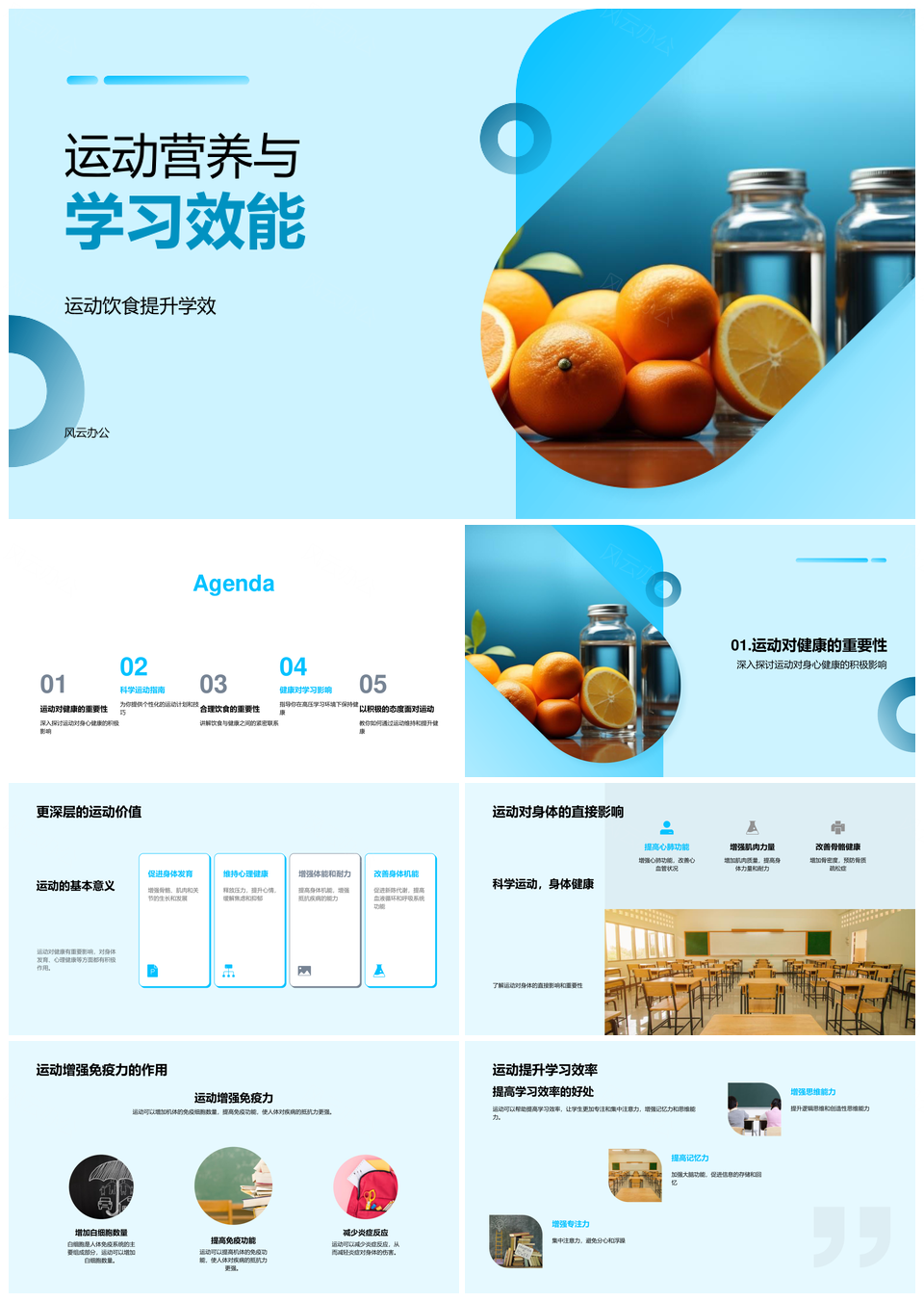 风云办公提供的科学运动饮食提升学习健康效能PPT模板,下载格式为pptx,一共26页,作品中文字及图均可以修改和编辑,图片更改请在作品中右键图片并更换,文字修改请直接点击文字进行修改。