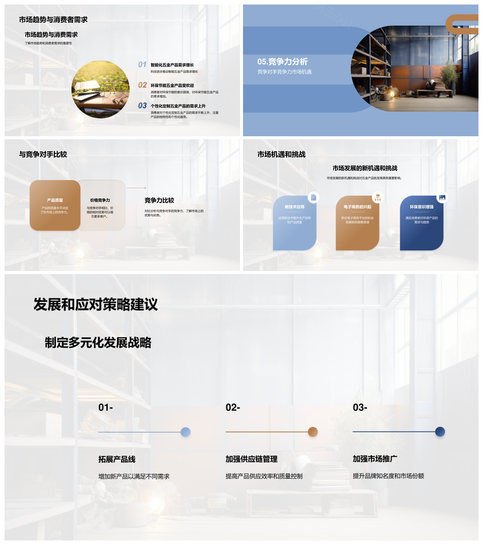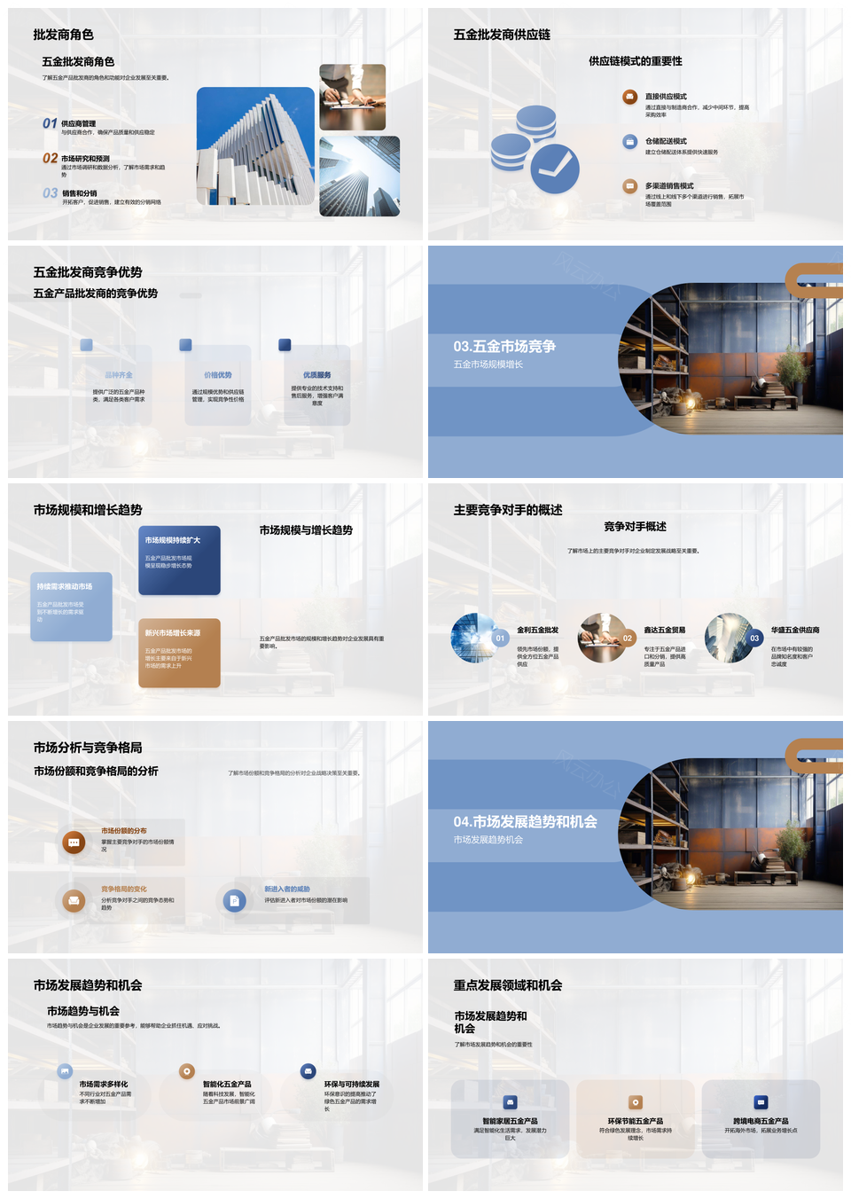风云办公提供的五金批发市场趋势竞合把握未来PPT模板,下载格式为pptx,一共23页,作品中文字及图均可以修改和编辑,图片更改请在作品中右键图片并更换,文字修改请直接点击文字进行修改。