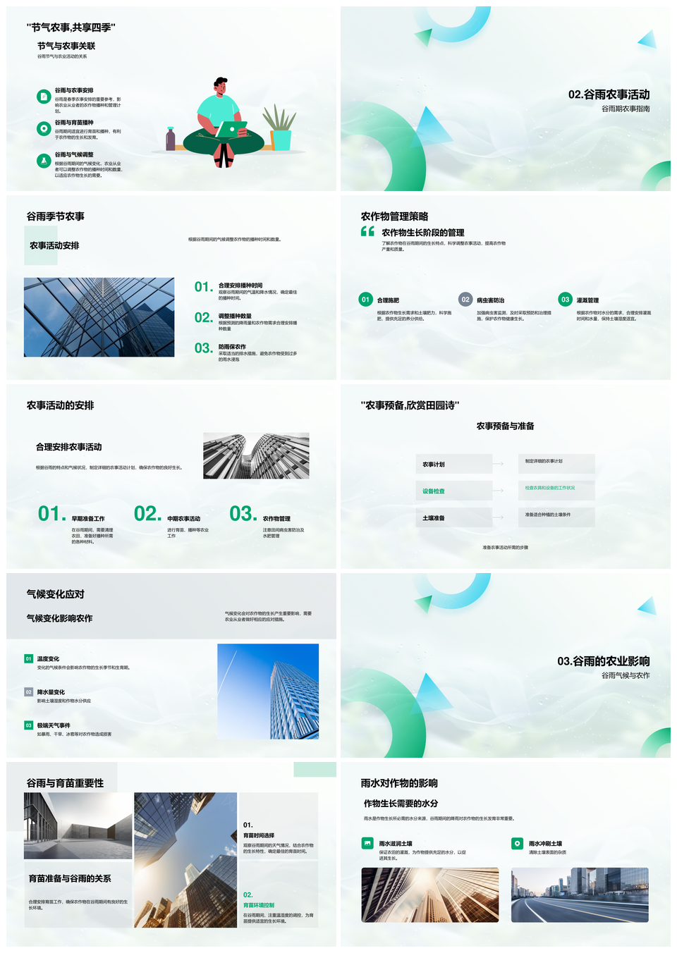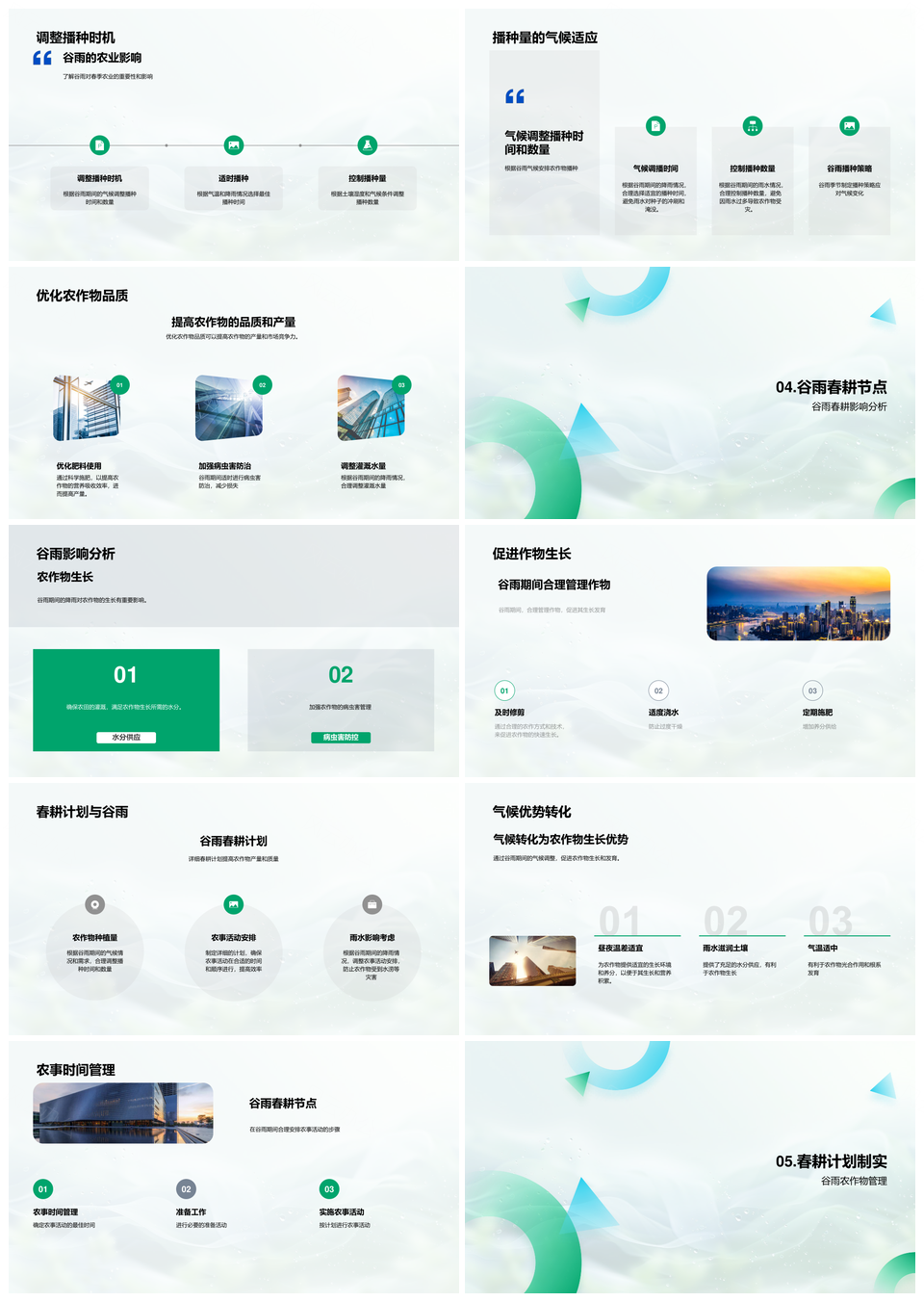 这是一张2025谷雨春耕播种育苗农业管理雨水气候应对PPT模板,包含谷雨、春耕、播种、育苗、农业、管理、雨水、气候、应对等主题内容,也可用作谷雨春耕播种育苗、春耕播种育苗农业、播种育苗农业管理、育苗农业管理雨水、农业管理雨水气候、管理雨水气候应对、春耕播种育苗管理、播种育苗农业雨水、农业管理气候应对、谷雨播种育苗管理、雨水气候应对春耕、春耕农业管理雨水、播种农业气候应对、育苗管理雨水气候、谷雨春耕管理应对等PPT场景使用。 风云办公提供的2025谷雨春耕播种育苗农业管理雨水气候应对PPT模板,下载格式为pptx,一共33页,作品中文字及图均可以修改和编辑,图片更改请在作品中右键图片并更换,文字修改请直接点击文字进行修改。
