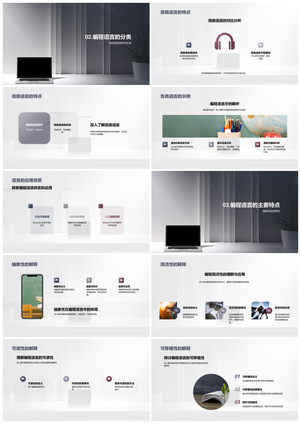 这是一张编程语言高低级特性应用解析PPT模板,包含编程语言、高低级、特性、应用、解析等主题内容,也可用作编程语言高低级特性应用、编程语言高低级特性解析、编程语言高低级应用解析、编程语言特性应用解析、高低级特性应用解析、编程语言高低级特性、编程语言高低级应用、编程语言高低级解析、编程语言特性应用、编程语言特性解析、编程语言应用解析、高低级特性应用、高低级特性解析、高低级应用解析、特性应用解析等PPT场景使用。