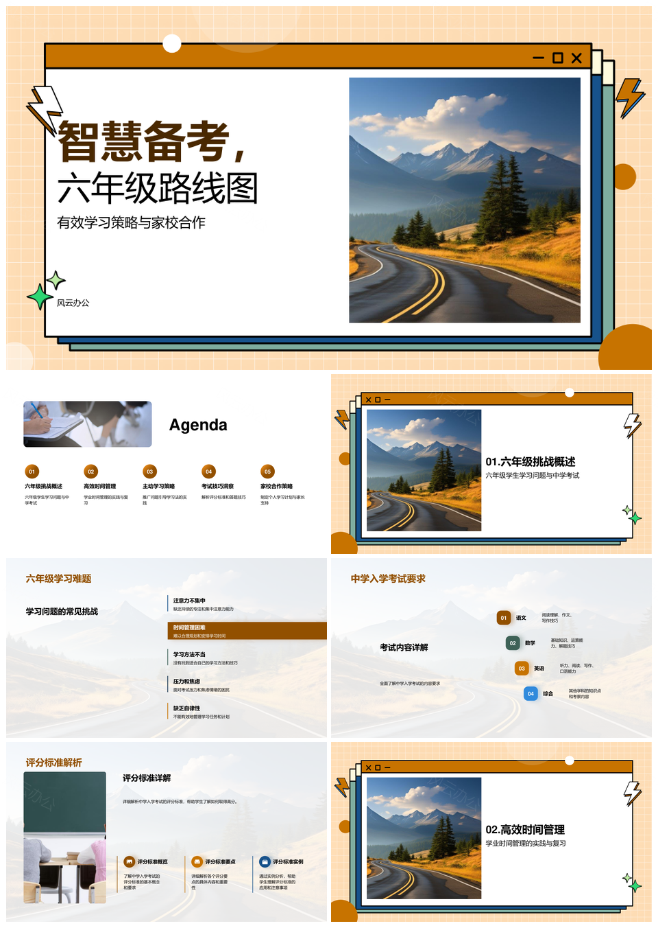 六年级智慧备考家校协同高效入学路线图PPT模板推荐