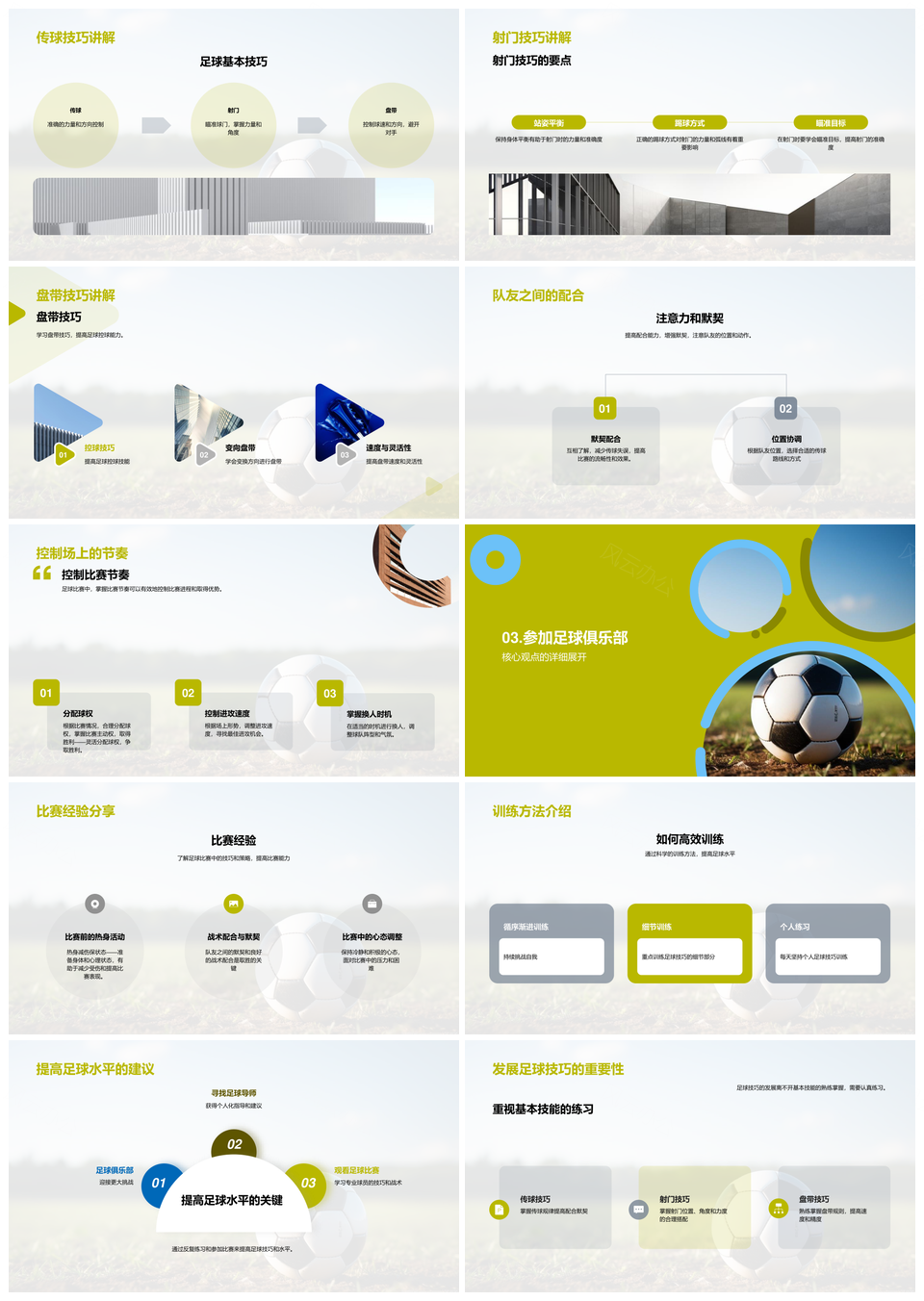 风云办公提供的足球教练技巧教学传球射门盘带解析PPT模板,下载格式为pptx,一共26页,作品中文字及图均可以修改和编辑,图片更改请在作品中右键图片并更换,文字修改请直接点击文字进行修改。