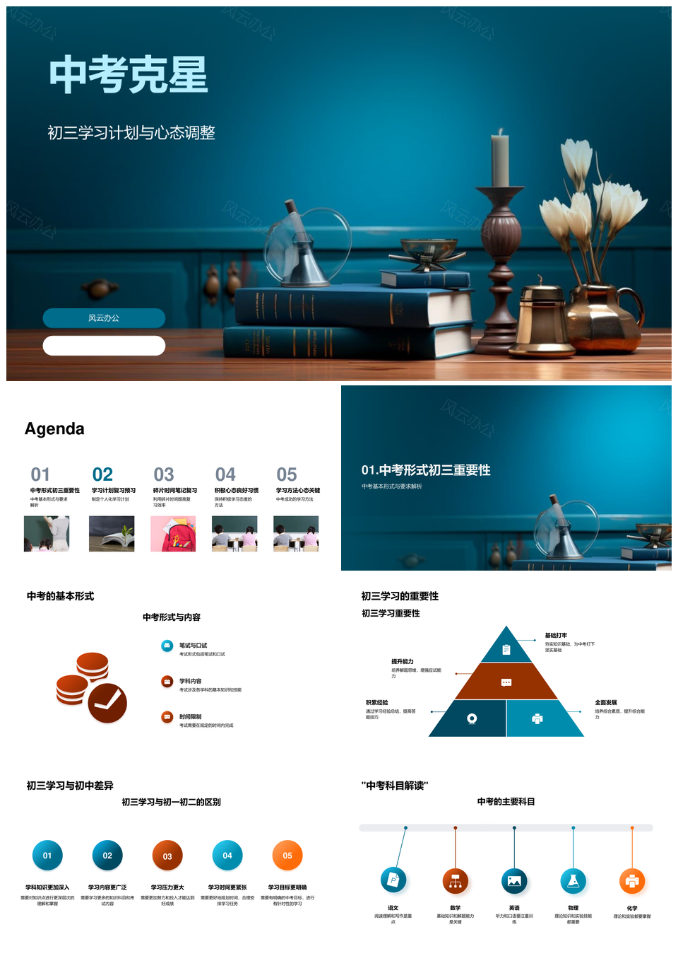 这是一张中考高效复习计划心态模考个性化跟踪教科书PPT模板,包含中考、高效、复习、计划、心态、模考、个性化、跟踪、教科书等主题内容,也可用作中考高效复习计划、高效复习计划心态、复习计划心态模考、计划心态模考个性化、心态模考个性化跟踪、模考个性化跟踪教科书、中考高效复习、高效复习计划、复习计划心态、计划心态模考、心态模考个性化、模考个性化跟踪、个性化跟踪教科书、中考高效、高效复习、复习计划等PPT场景使用。 风云办公提供的中考高效复习计划心态模考个性化跟踪教科书PPT模板,下载格式为pptx,一共33页,作品中文字及图均可以修改和编辑,图片更改请在作品中右键图片并更换,文字修改请直接点击文字进行修改。
