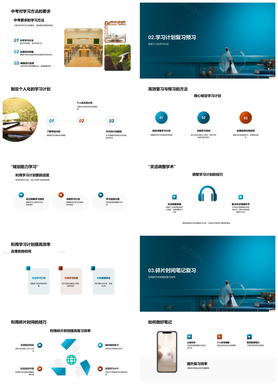 中考复习学习计划目标策略时间规划个性化教材方法PPT模板